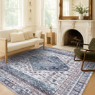 ️ Navy Cream Vintage Rug, Eclectic Floral Sweet Pastel Area Rugs for Living room