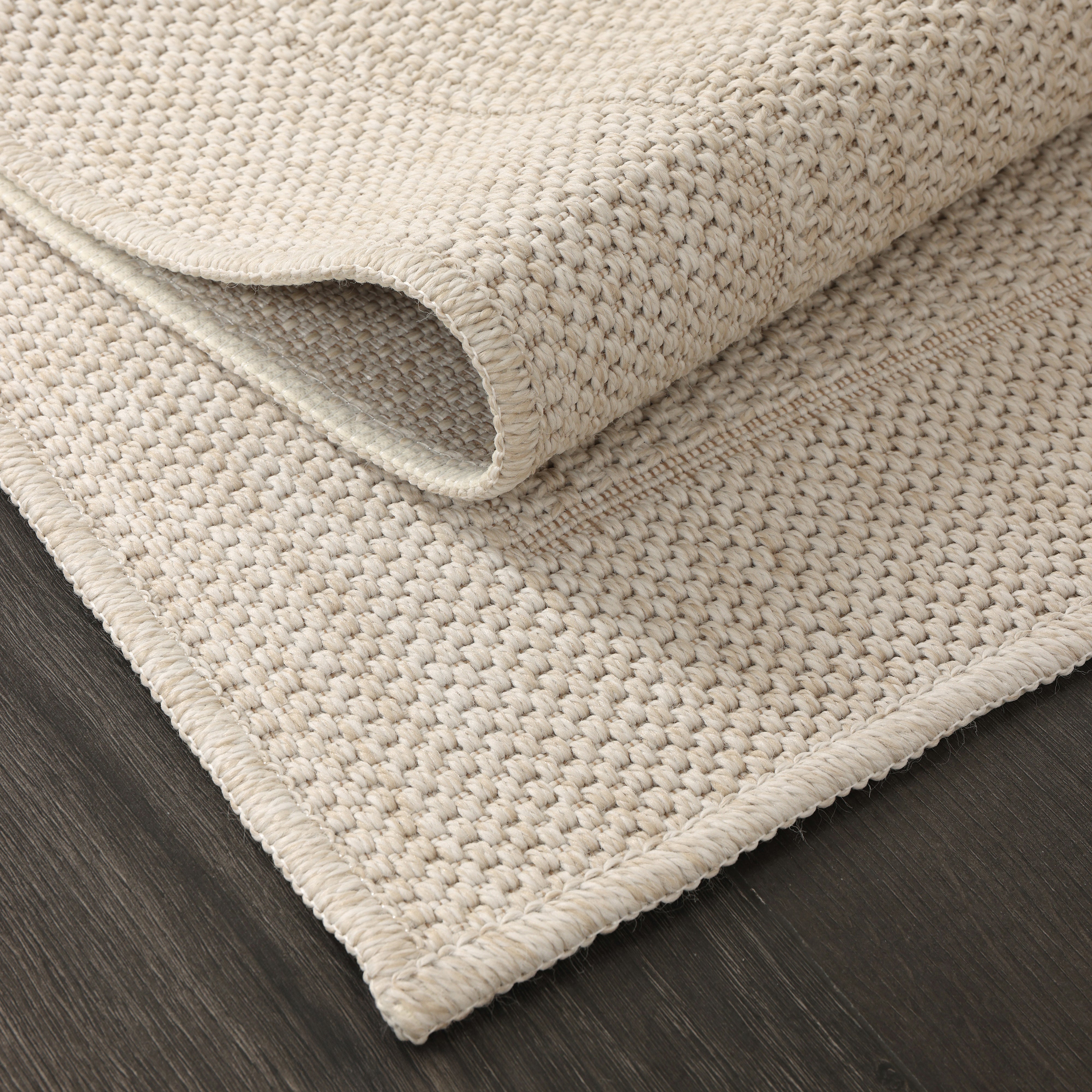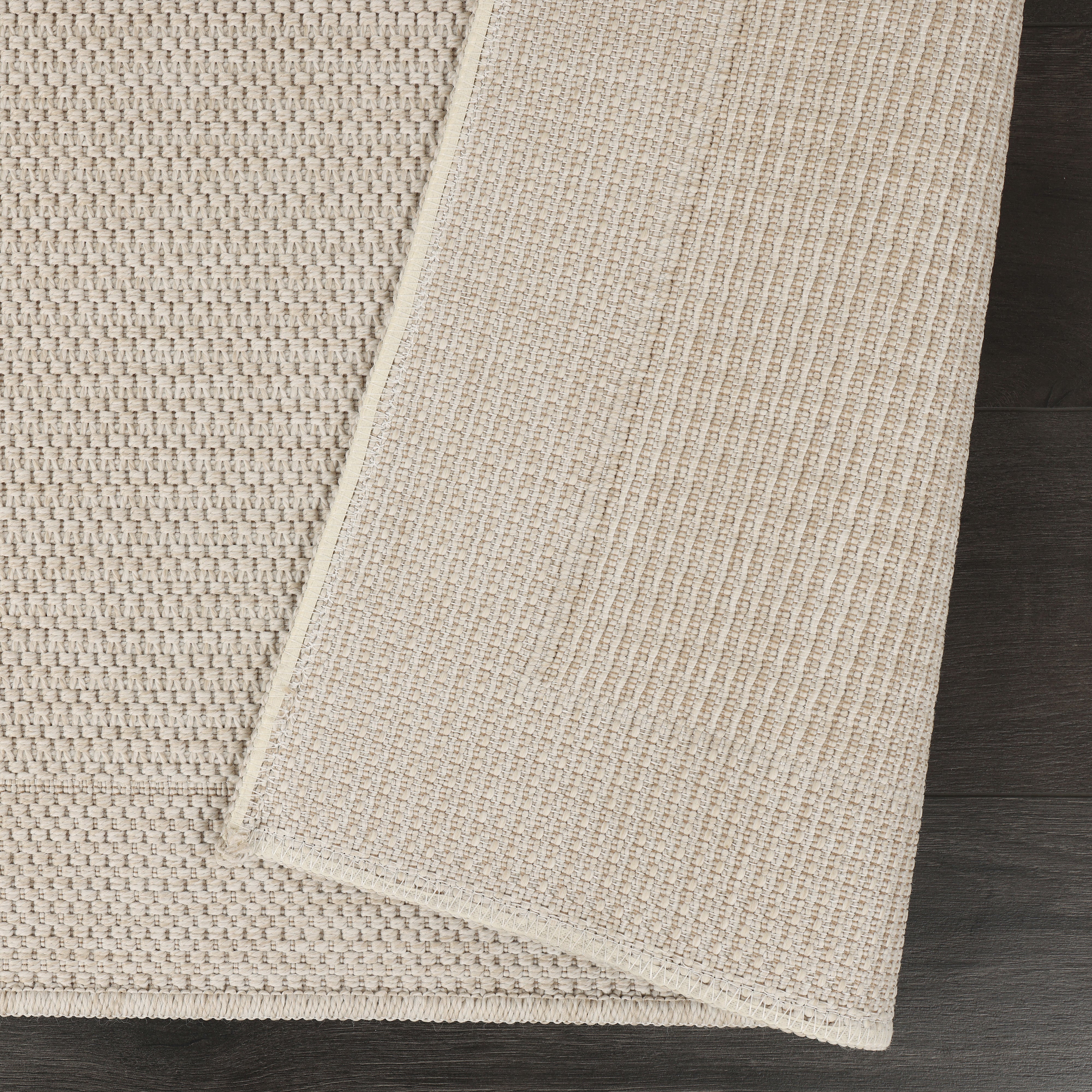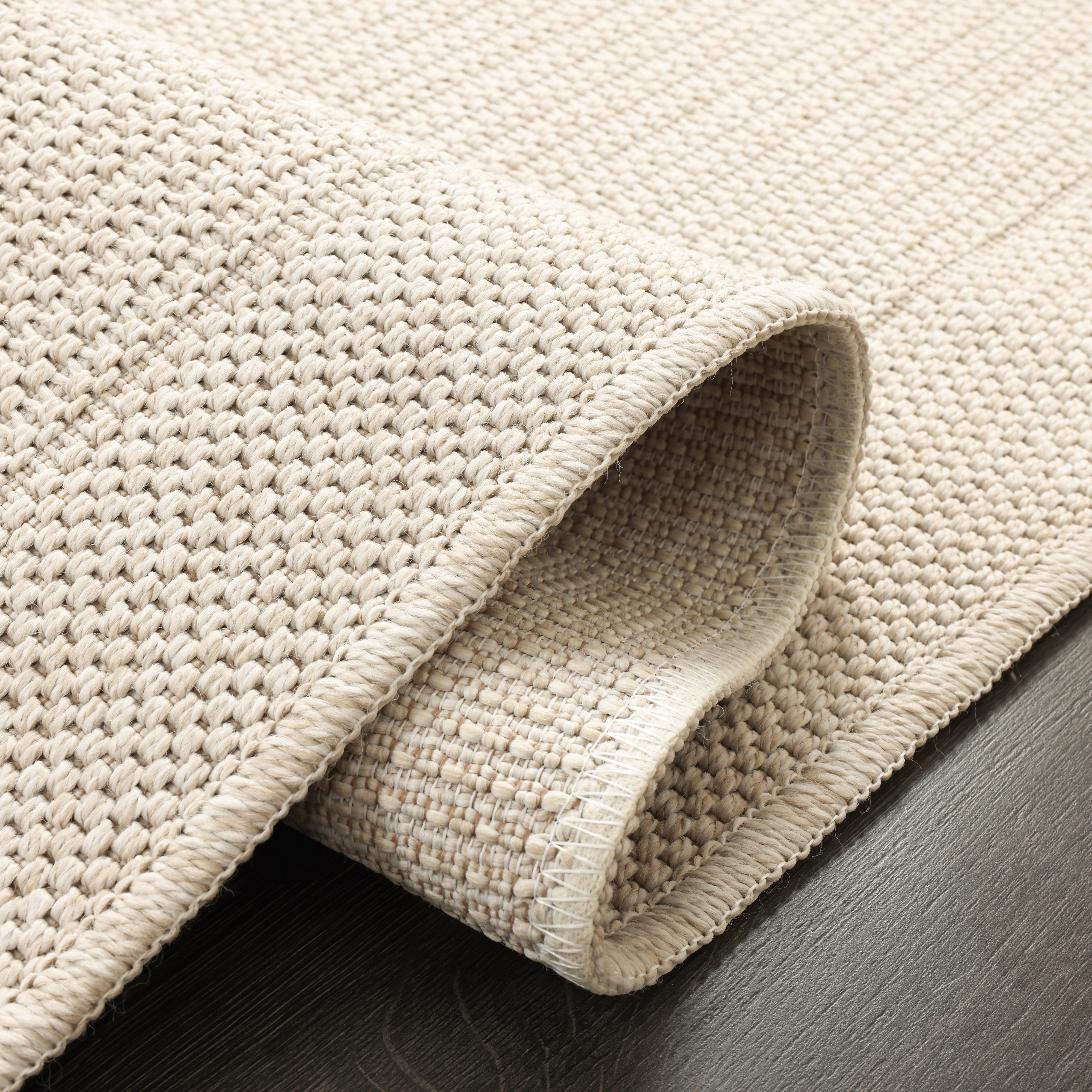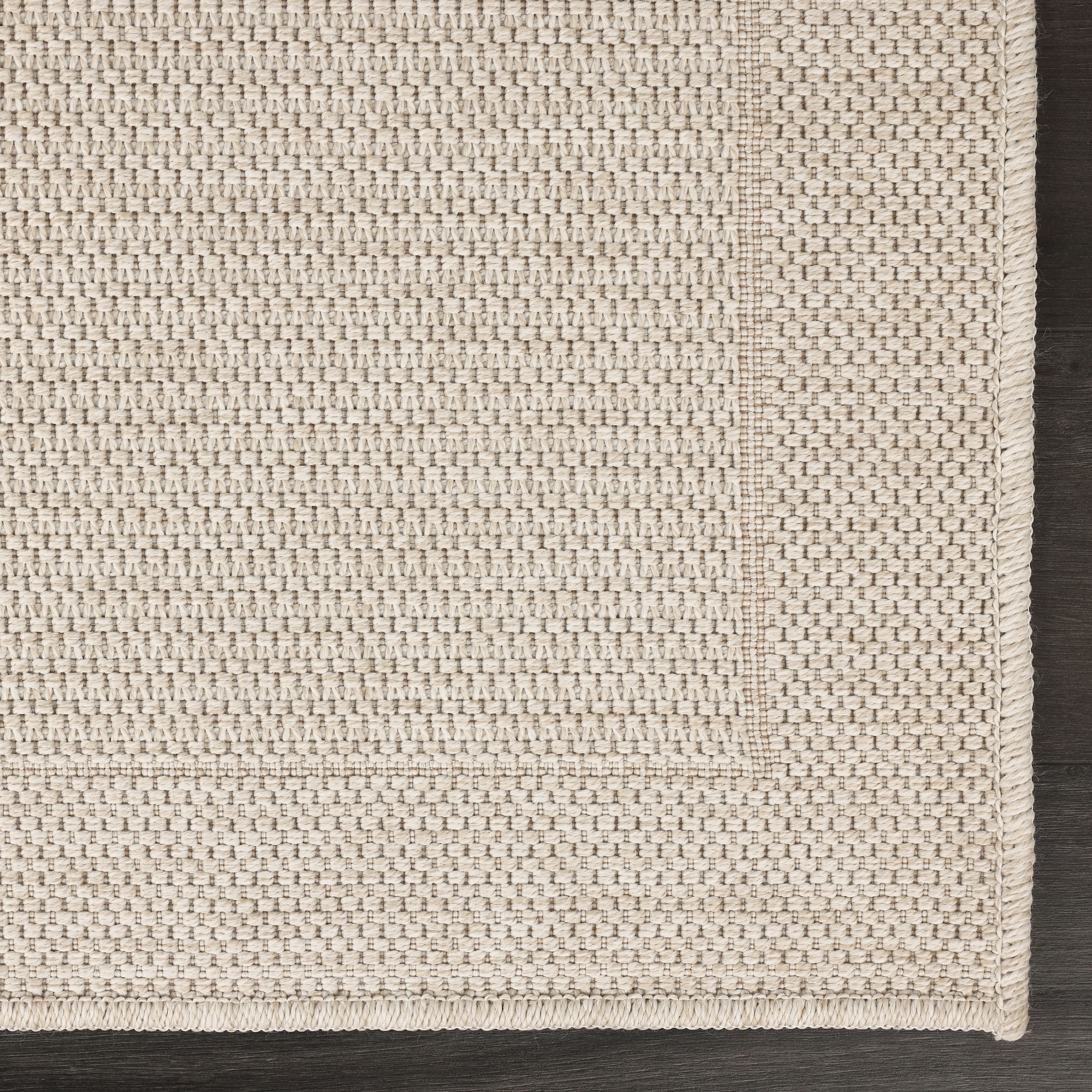 Bring a bright and airy feel to your home with this minimalist area rug. Featuring a subtle bordered design and a rich basket-weave texture, this rug comes in a soft sand beige (ivory) tone that complements any decor. Its high-quality flat-weave construction provides the natural elegance of sisal rugs with the added benefits of easy maintenance and long-lasting durability.