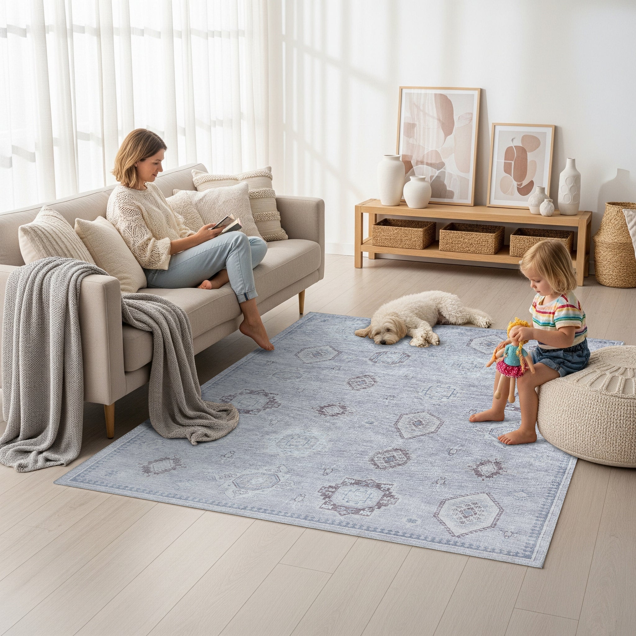 Designed for the practical needs of a busy household, these washable rugs offer a low-pile construction paired with an integrated non-slip traction backing for maximum stability.