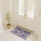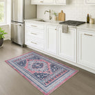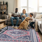 Step into timeless elegance with the Paulina Pale Pink & Midnight Blue Persian Vintage Rug, a beautiful blend of vintage charm and contemporary design Inspired by well-traveled vintage designs. Combines the charm of timeless designs with easy-care, livability for any home or lifestyle. Features a fresh incarnation of the vintage Turkish rug look. Classic in pattern and modern in color, this rug boasts a beautiful palette of pink, blue, muted turquoise, gold brown, pale blush and off white, featuring distinct dye-lot details. Made in Turkiye. This low pile digitally printed assortment of rugs features stunning designs and perfectly distressed effect for effortless charm that are matched with a traction backing ideal for heavily trafficked, hard surface spaces such as entryways, halls, living rooms, bathrooms, and kitchens. Oushak rugs originate from Ushak, Turkiye, and are recognizable by their distinct patterns and color palettes. Oushak rugs are highly sought after and timeless floor coverings. Want to see more Oushak Rugs? View all collection >> It’s our purpose to create beautiful livesβ€”for the artisans who make our products, for our employees, and for our customers. Responsibly sourced materials are grown, collected, and manufactured according to fundamental environmental, social, and ethical accountability benchmarks. Your partnership supports this mission. ️ Please Note: All sizes are nominal, accepted variance is +/- 4% Blot spills immediately with a clean, dry cloth. Vacuum regularly with beater bar off. If the rug gets wet, place it on a flat surface to air dry. We want you to be thrilled with your purchase. If you're not completely satisfied, we’ll gladly offer you a refund of the merchandise price within 30 days of receipt of product. If you have questions about shipping, returns or delivery, please visit our shop page, or contact us.