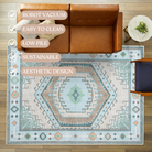 The Elea Aesthetic Green Oushak Rug is a premium flooring solution designed to bring a refined, vintage aesthetic to contemporary American homes. As a sophisticated choice among high-quality area rugs, this piece utilizes a tranquil palette of sage green, moss accents, and ivory to create a refreshing, nature-inspired environment in any room. These modern rugs provide a durable and stylish foundation, successfully reimagining the delicate floral details of traditional Turkish Oushak designs for today’s lifestyle. As a practical and washable addition to the home, these elegant rugs serve as a bridge between timeless artistry and the functional demands of a modern household. This low-pile, digitally printed rug combines a distressed vintage pattern with a machine-safe construction, making it an ideal choice for high-traffic American living spaces.