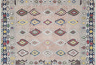 Mila offers a pinkish beige kilim Oushak rug with a colorful geometric pattern, inspired from the vintage bohemian style, to add a traditional vibe and comfort underfoot. Perfect for all areas of the home. This is a lovely rug that can fit wonderfully in any room you want to make special.
