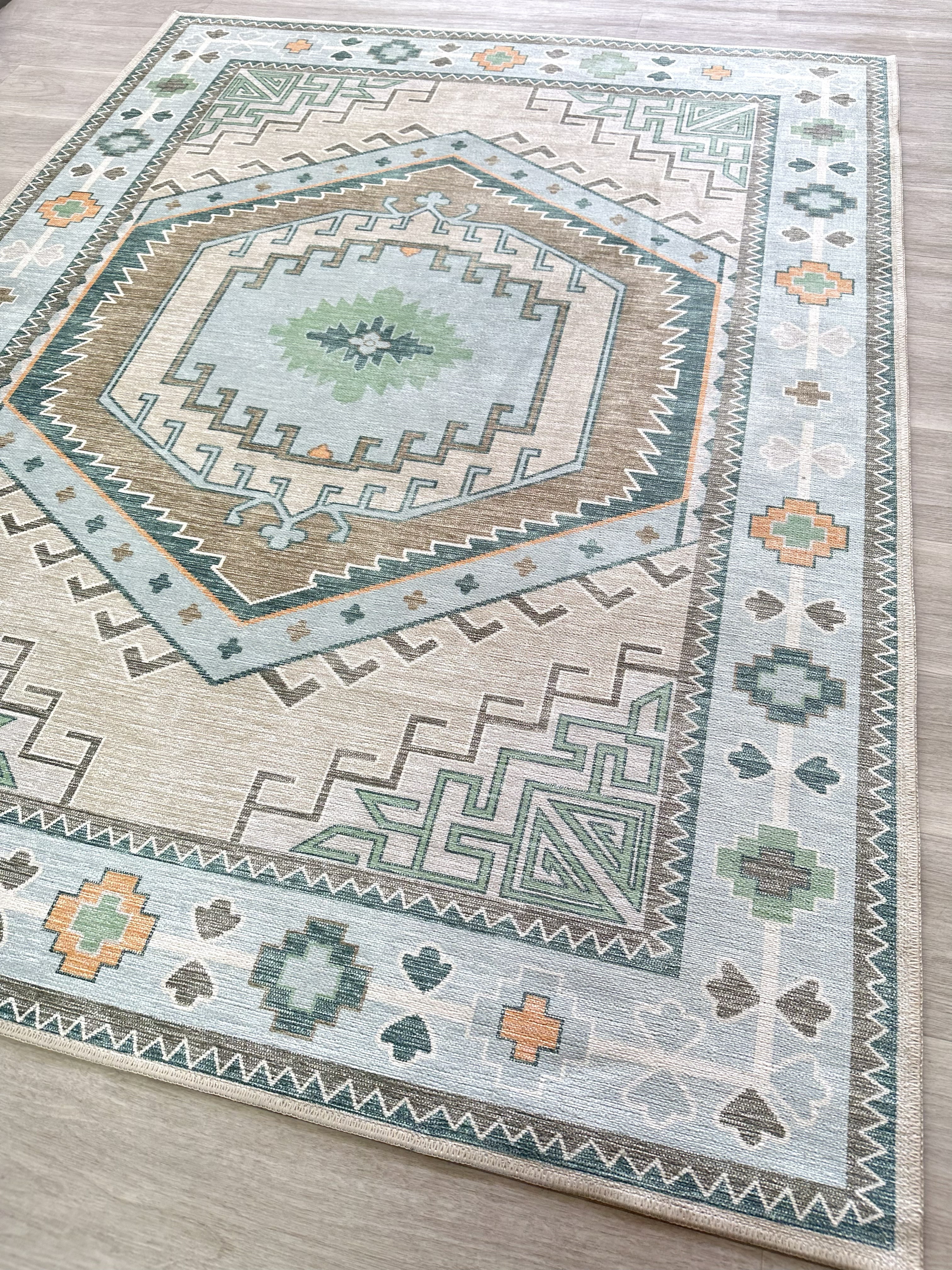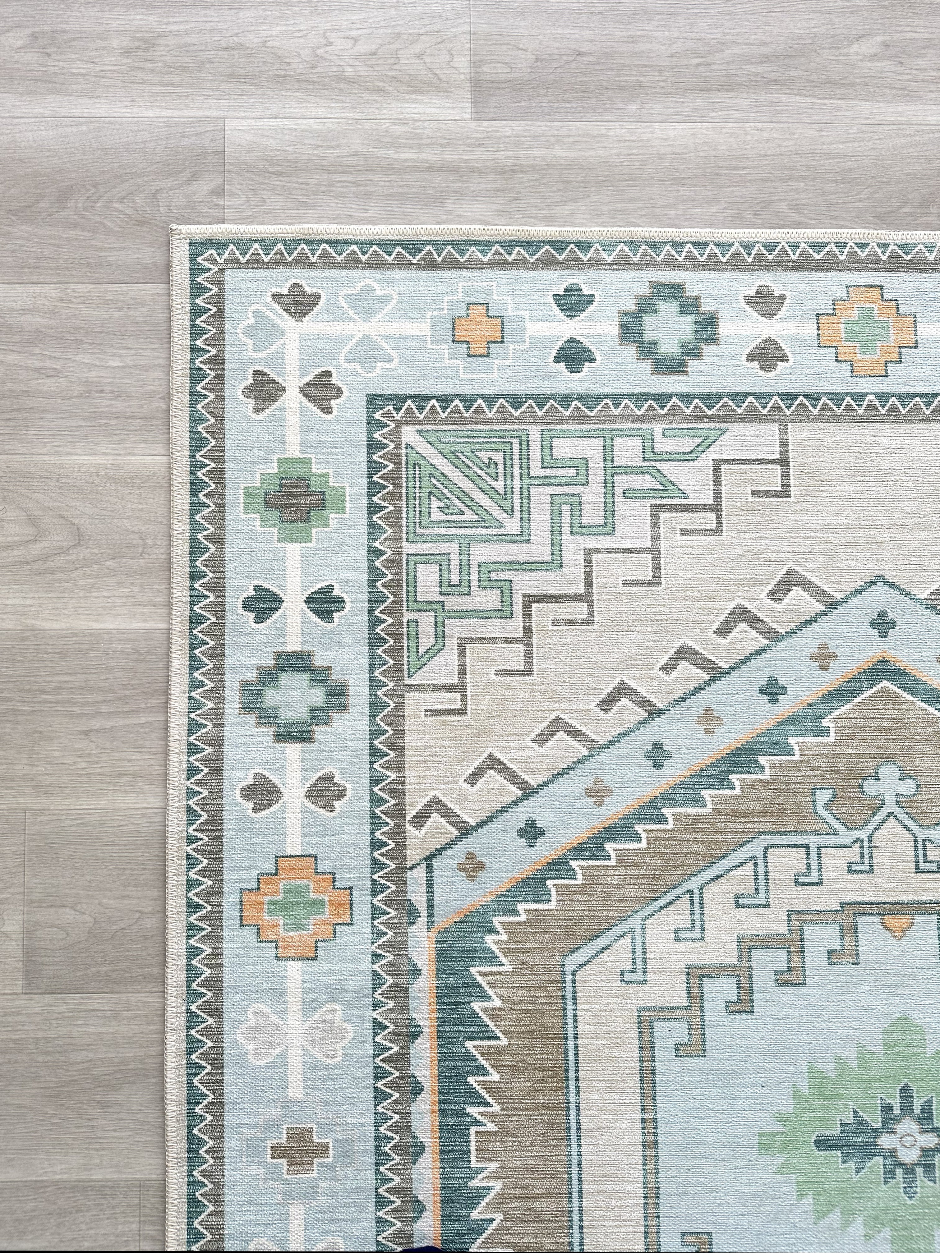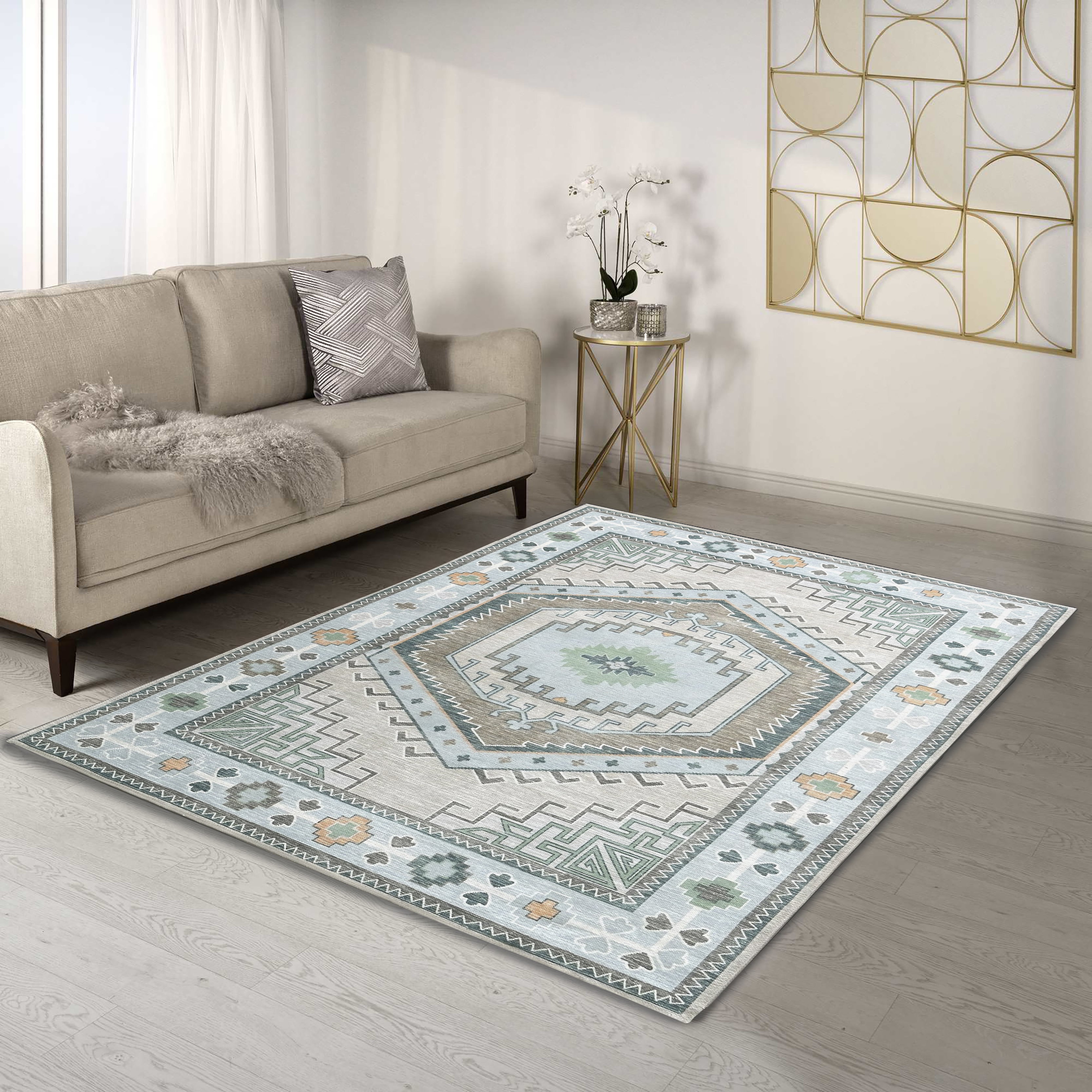 The Elea Aesthetic Green Oushak Rug is a premium flooring solution designed to bring a refined, vintage aesthetic to contemporary American homes. As a sophisticated choice among high-quality area rugs, this piece utilizes a tranquil palette of sage green, moss accents, and ivory to create a refreshing, nature-inspired environment in any room. These modern rugs provide a durable and stylish foundation, successfully reimagining the delicate floral details of traditional Turkish Oushak designs for today’s lifestyle. As a practical and washable addition to the home, these elegant rugs serve as a bridge between timeless artistry and the functional demands of a modern household. This low-pile, digitally printed rug combines a distressed vintage pattern with a machine-safe construction, making it an ideal choice for high-traffic American living spaces.