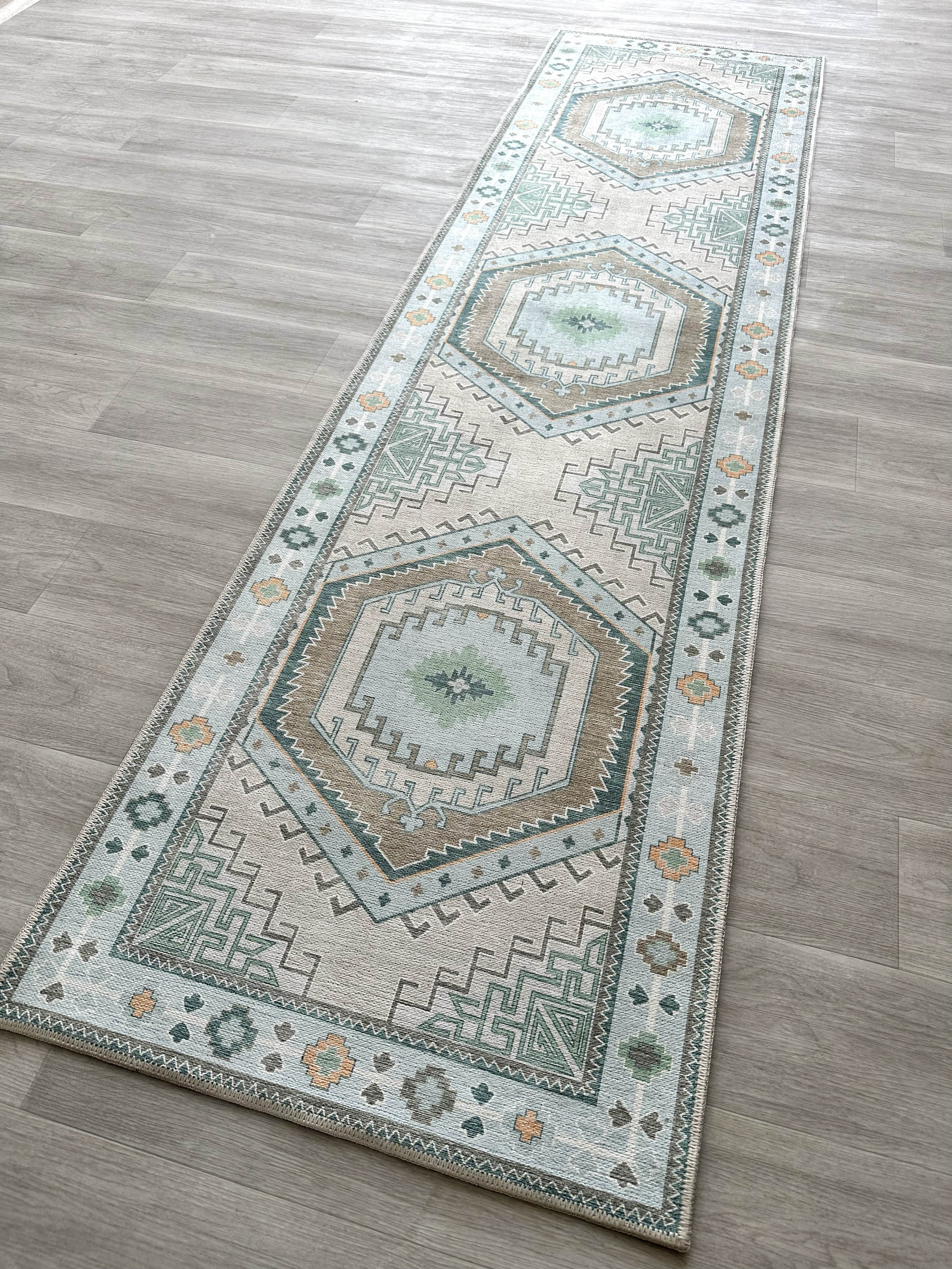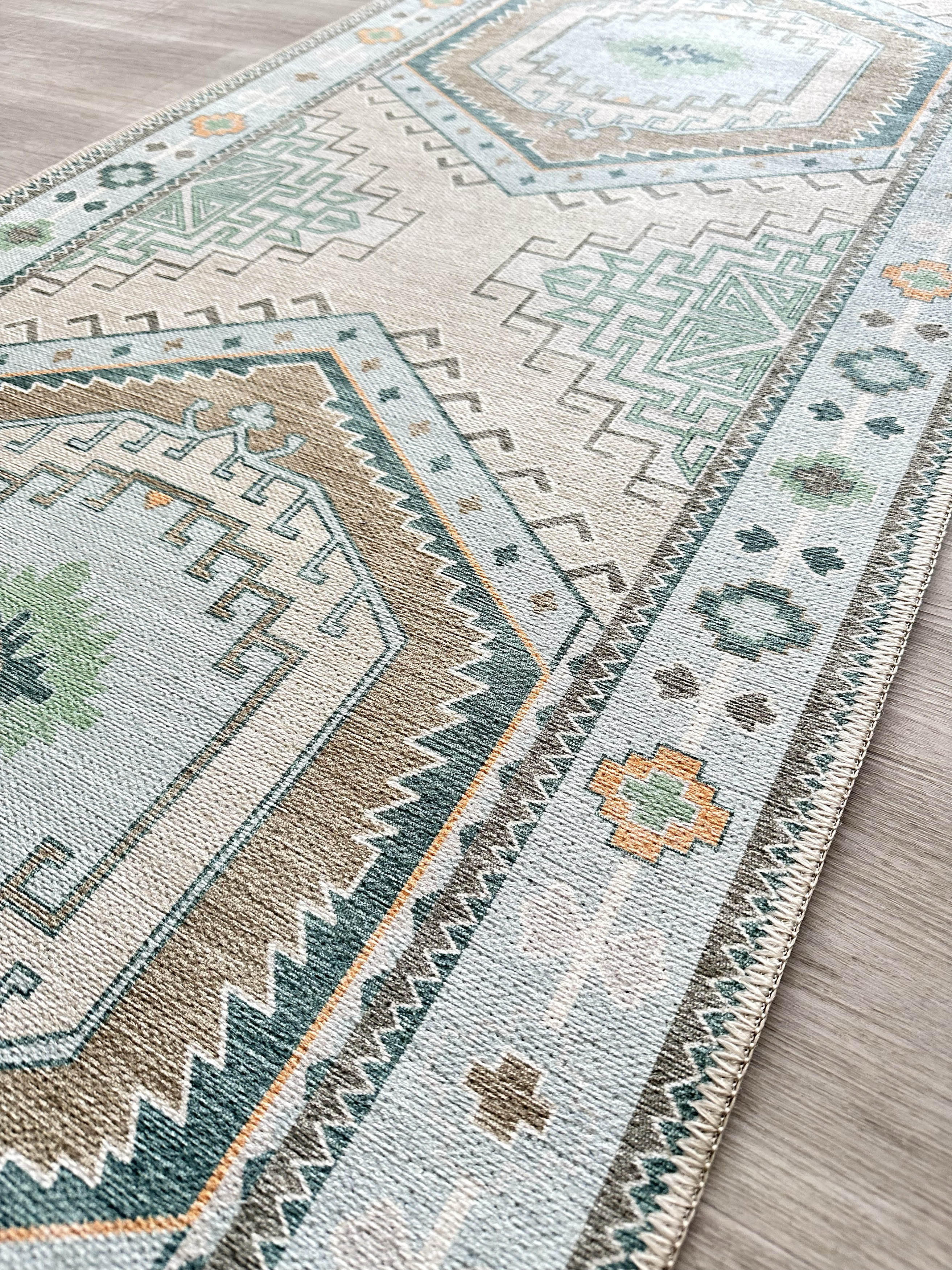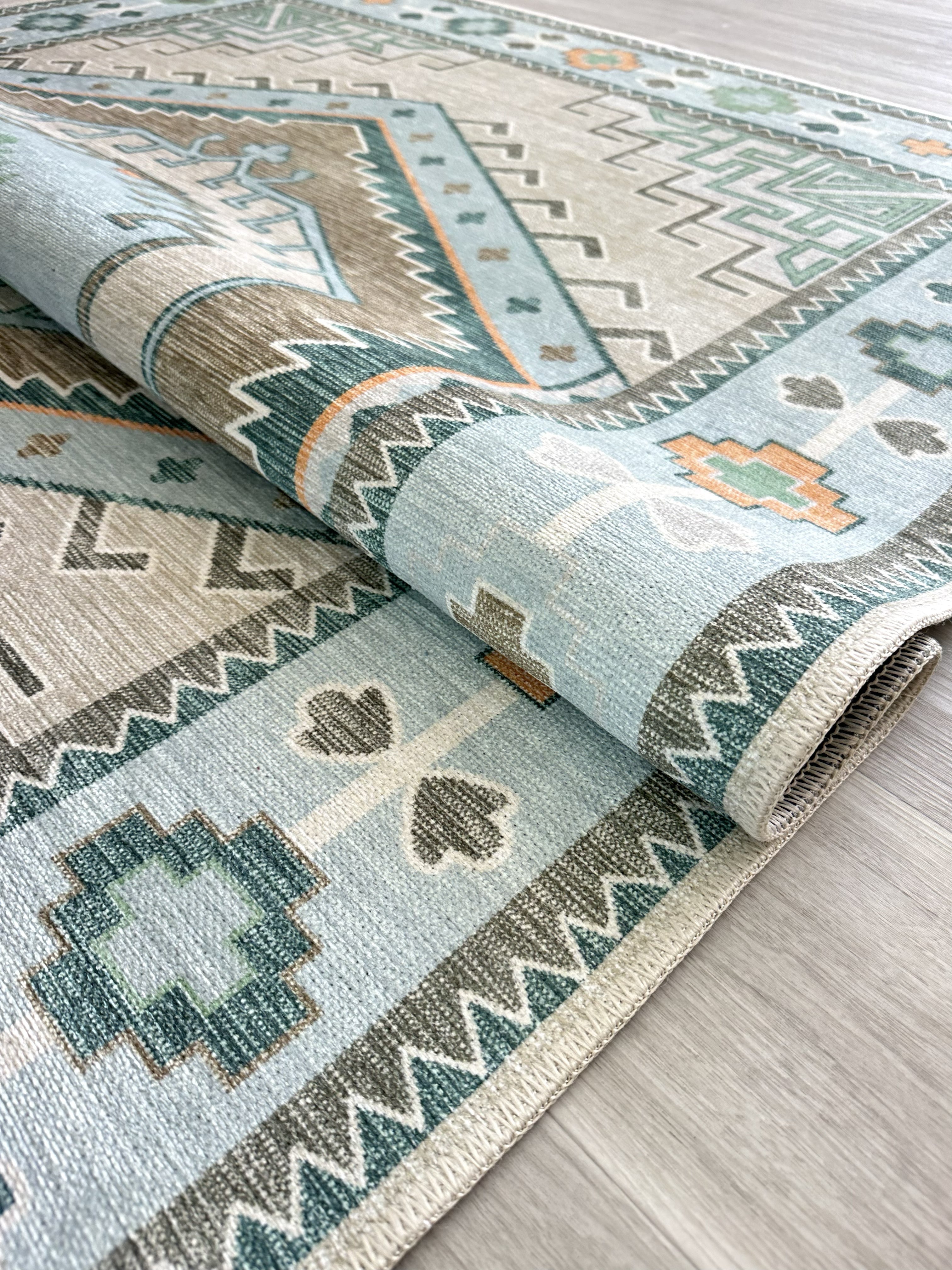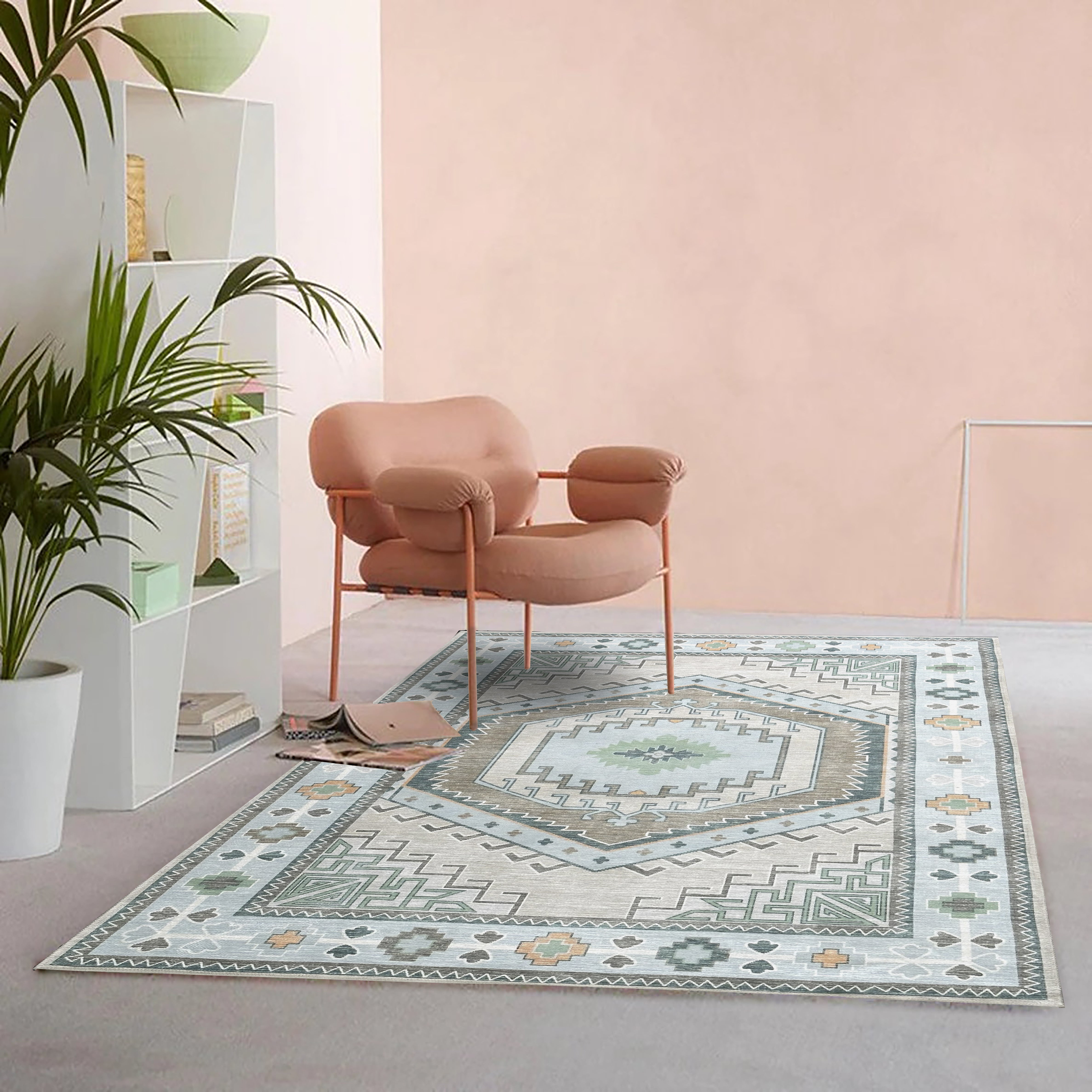The Elea Aesthetic Green Oushak Rug is a premium flooring solution designed to bring a refined, vintage aesthetic to contemporary American homes. As a sophisticated choice among high-quality area rugs, this piece utilizes a tranquil palette of sage green, moss accents, and ivory to create a refreshing, nature-inspired environment in any room. These modern rugs provide a durable and stylish foundation, successfully reimagining the delicate floral details of traditional Turkish Oushak designs for today’s lifestyle. As a practical and washable addition to the home, these elegant rugs serve as a bridge between timeless artistry and the functional demands of a modern household. This low-pile, digitally printed rug combines a distressed vintage pattern with a machine-safe construction, making it an ideal choice for high-traffic American living spaces.