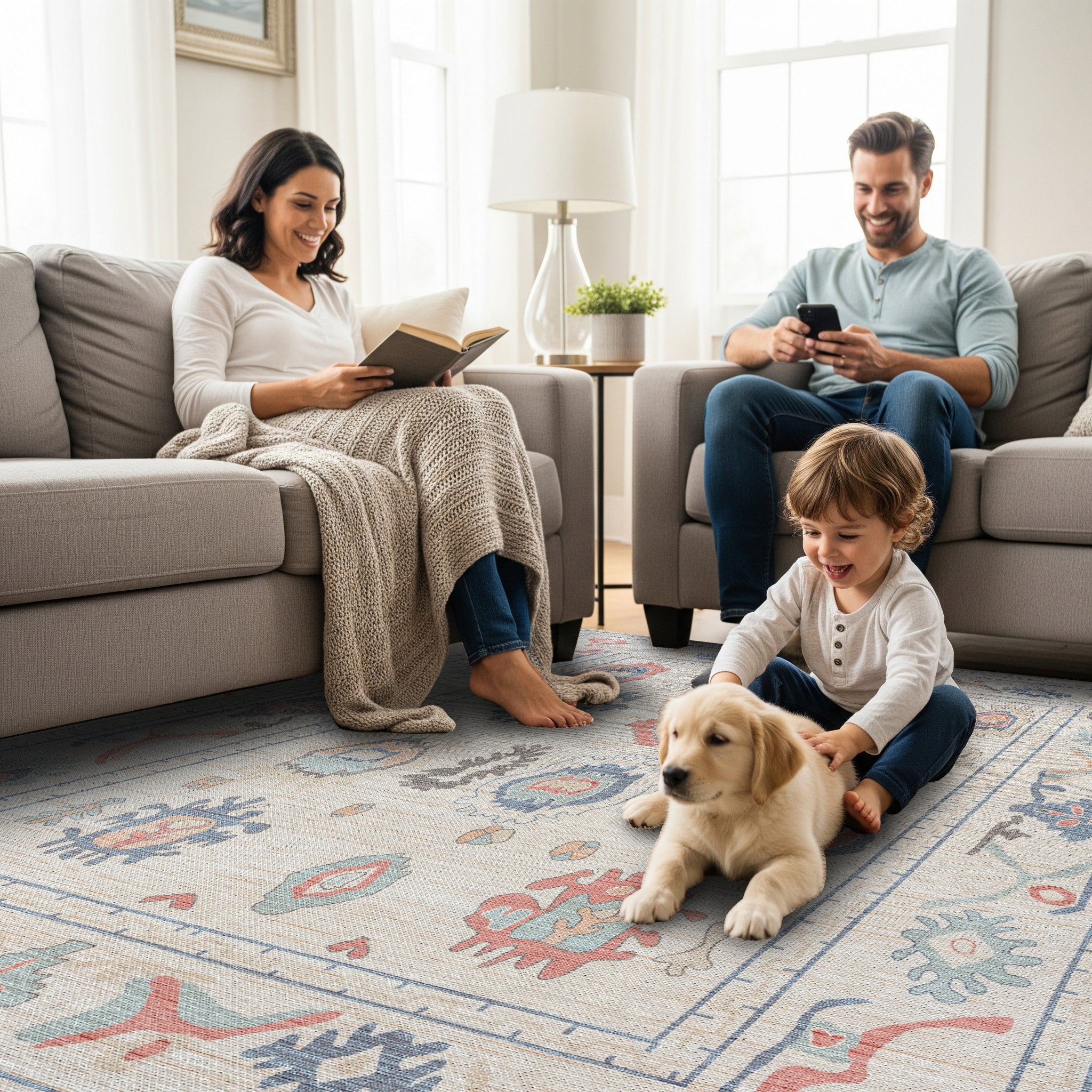 Crafted with soft yet durable materials, our rugs are perfect for families with children and pets. Stain-resistant and safe for playful moments.