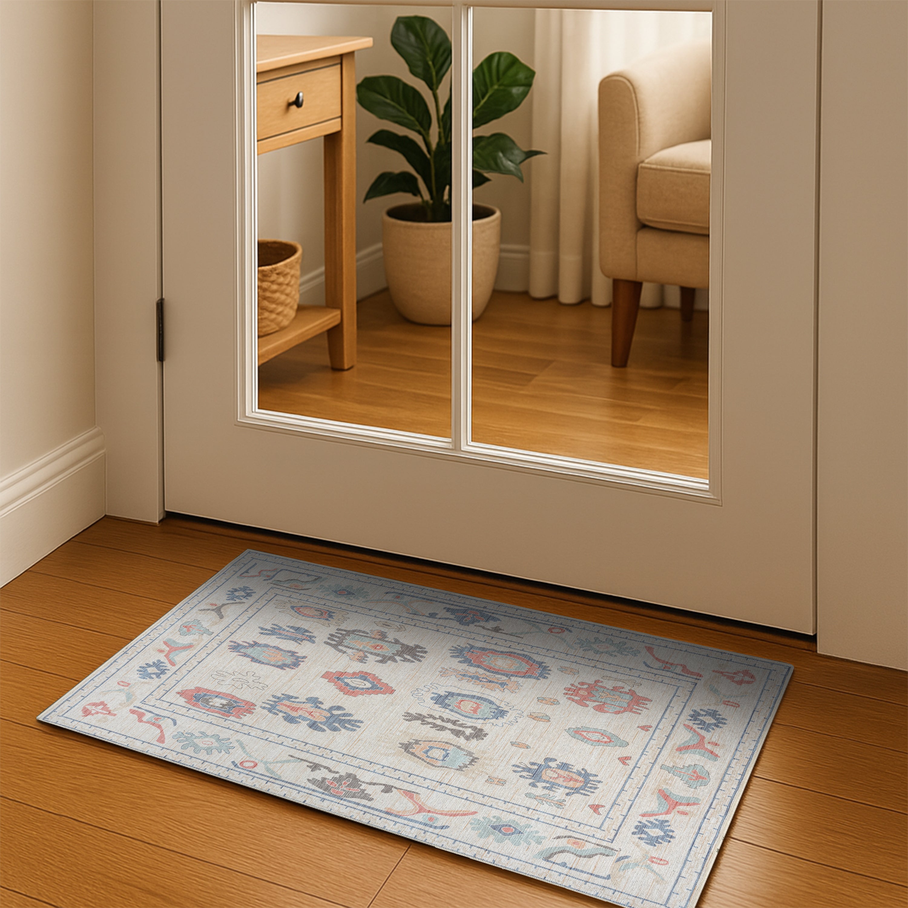 Crafted for real-life living, this rug is fully machine washable and includes a non-slip backing for added stability in high-traffic areas. The low-pile, lightweight design glides easily under doors and furniture, making it as convenient as it is beautiful.