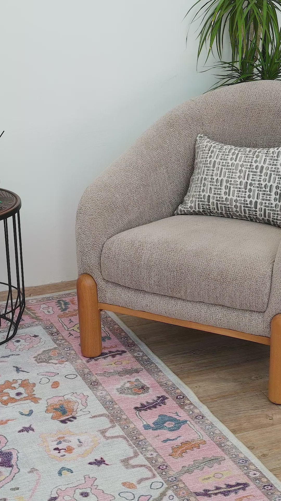 The Luella Pastel Pink Cream Modern Oushak Rug is a premium flooring solution designed to bring a refined, vintage aesthetic to contemporary American homes. As a sophisticated choice among high-quality area rugs, this piece utilizes a palette of soft blush pink and warm cream to create a gentle, welcoming environment in any room. These modern rugs provide a durable and stylish foundation, reimagining the intricate details of traditional Oushak rugs for today’s lifestyle.As a practical and washable addition to the home, these elegant rugs serve as a bridge between timeless artistry and the functional demands of a modern household. This low-pile, digitally printed rug combines a distressed vintage Turkish pattern with a machine-safe construction, making it an ideal choice for high-traffic American living spaces.
