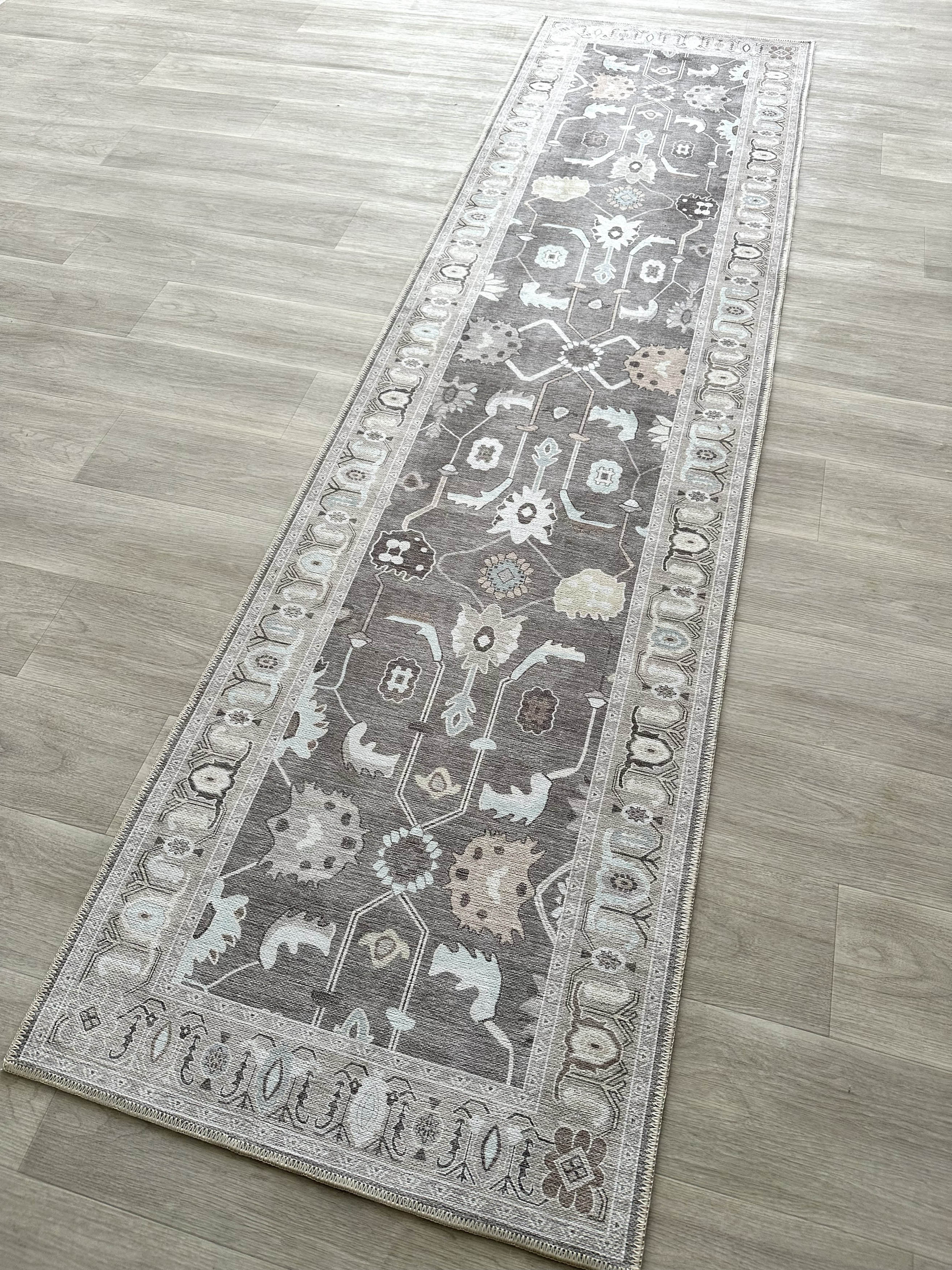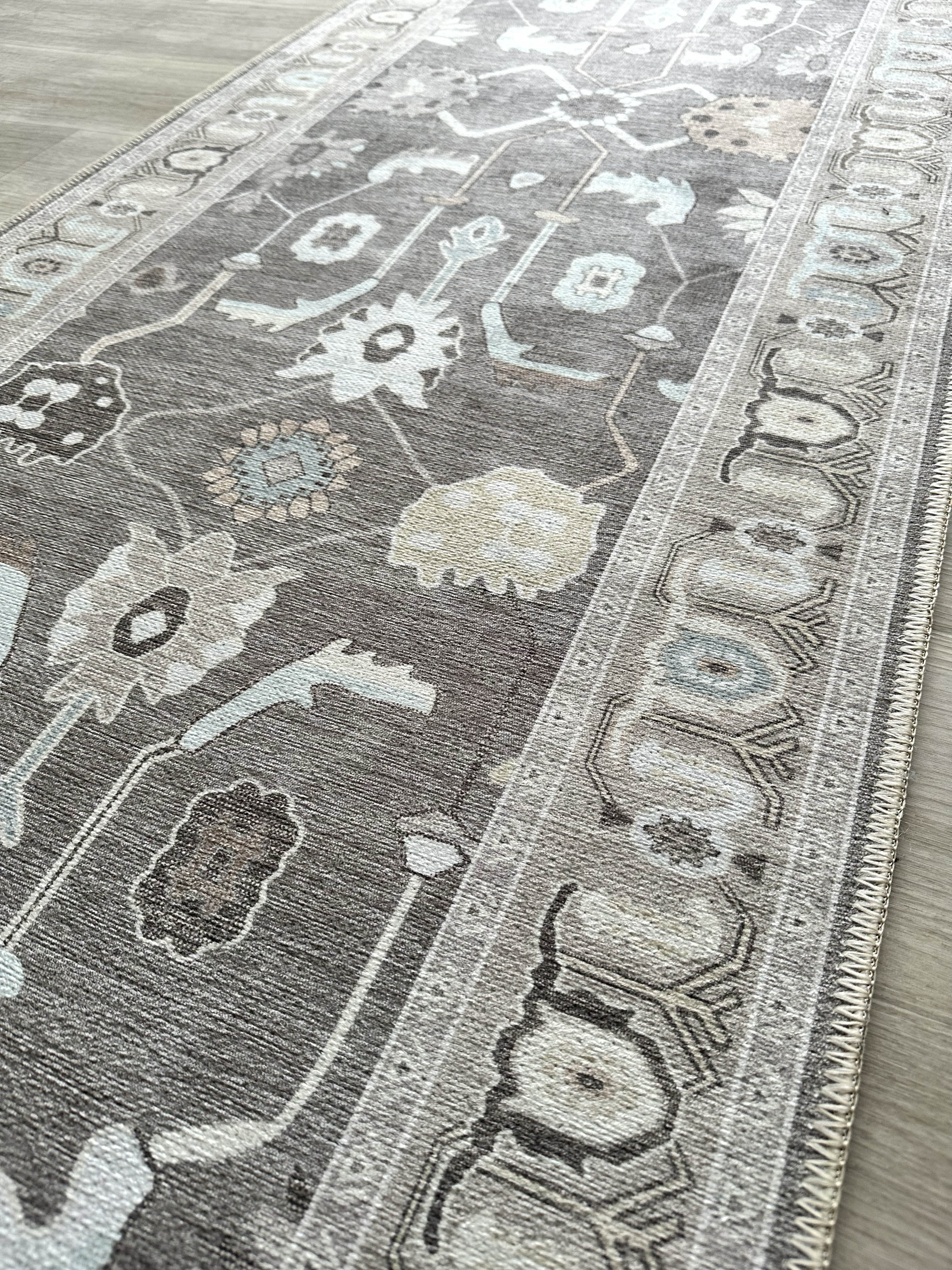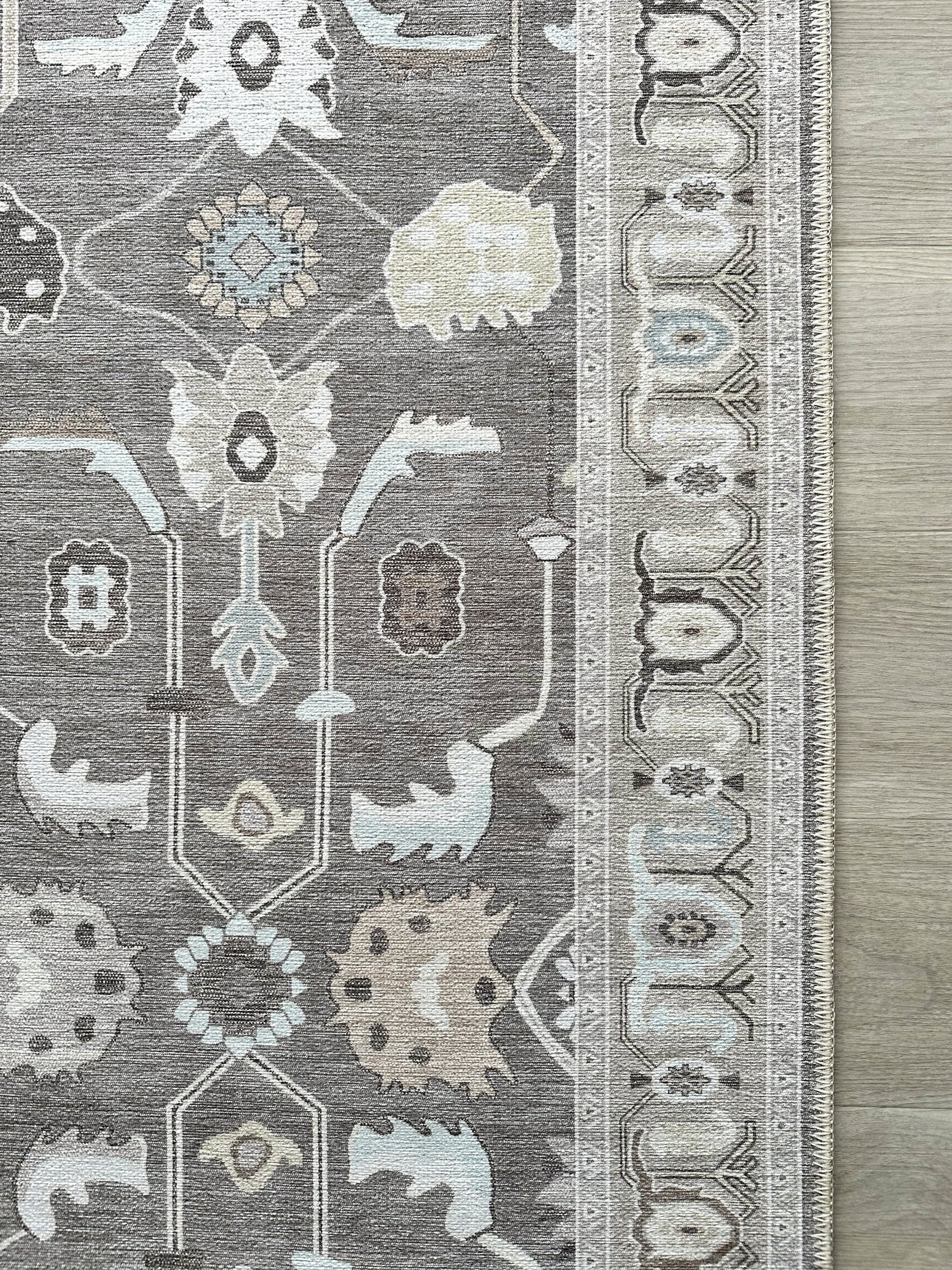 The Rawiya Brown Gray Modern Oushak Rug is a premium flooring solution designed to bring a refined, vintage aesthetic to contemporary American homes. As a sophisticated choice among high-quality area rugs, this piece utilizes a balanced palette of deep cocoa brown, slate gray, and soft charcoal to create a grounded, modern environment in any room. These modern rugs provide a durable and stylish foundation, successfully reimagining the intricate details of traditional Turkish Oushak designs for today’s lifestyle. As a practical and washable addition to the home, these elegant rugs serve as a bridge between timeless artistry and the functional demands of a modern household. This low-pile, digitally printed rug combines a distressed vintage pattern with a machine-safe construction, making it an ideal choice for high-traffic American living spaces.