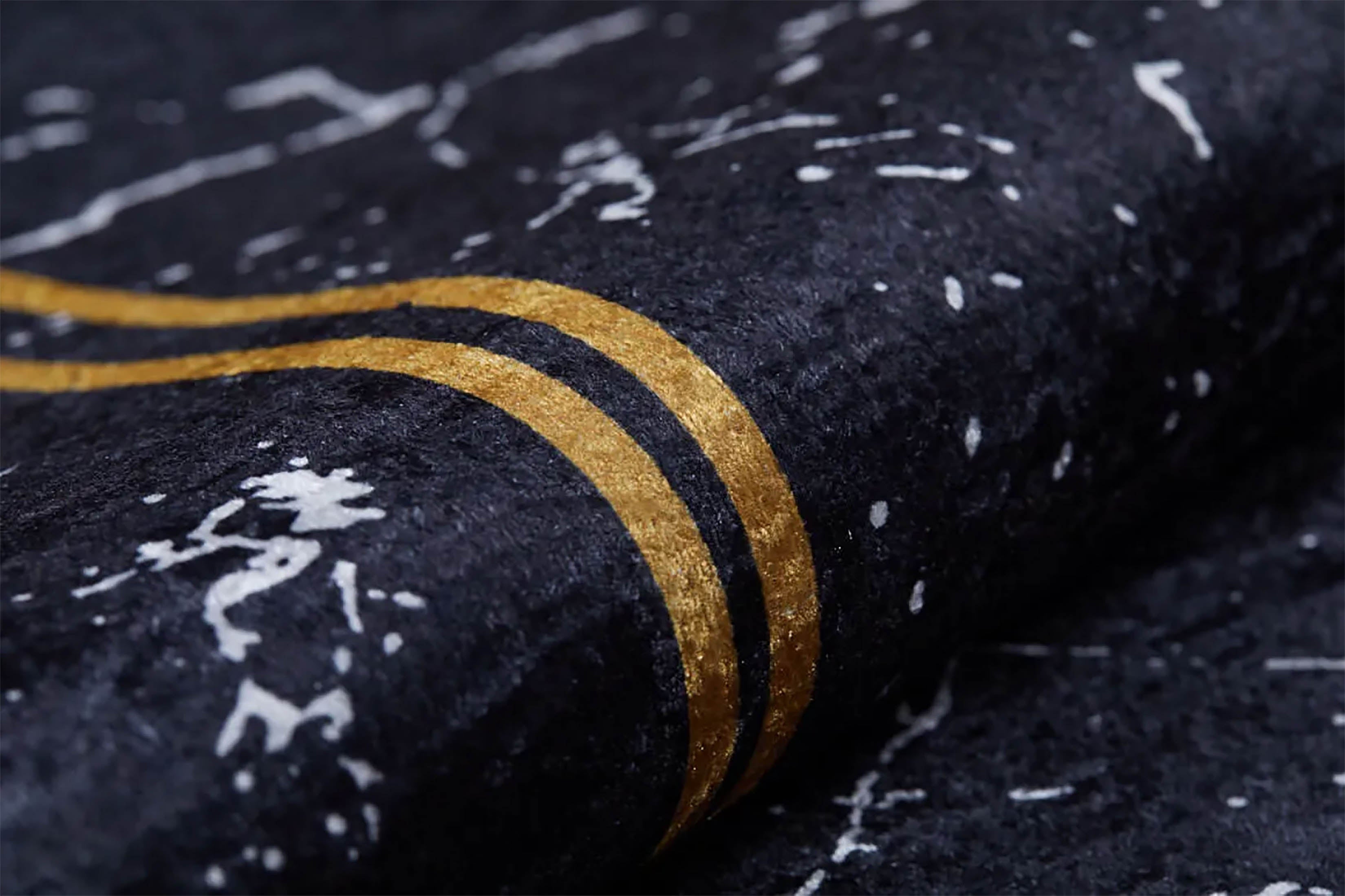 Lilah geometric marble border modern rug , featuring geometric patterns, drawn in a gold palette. Ground your space with this vintage-inspired floor rug for a versatile base to build a floral luxury style from.