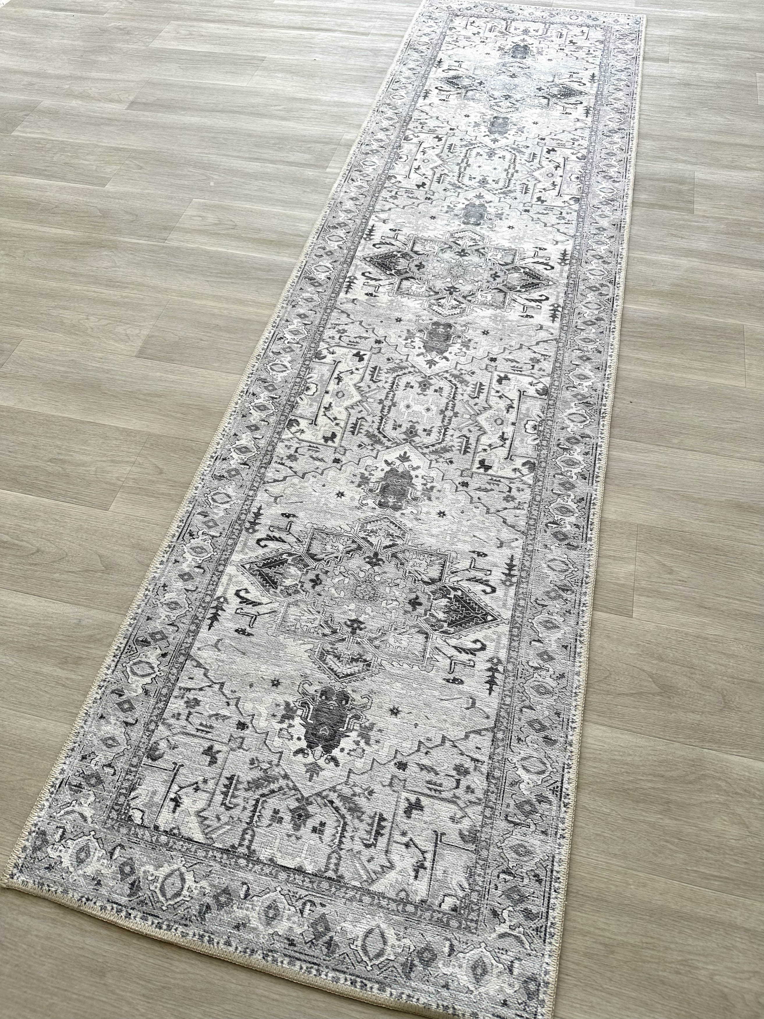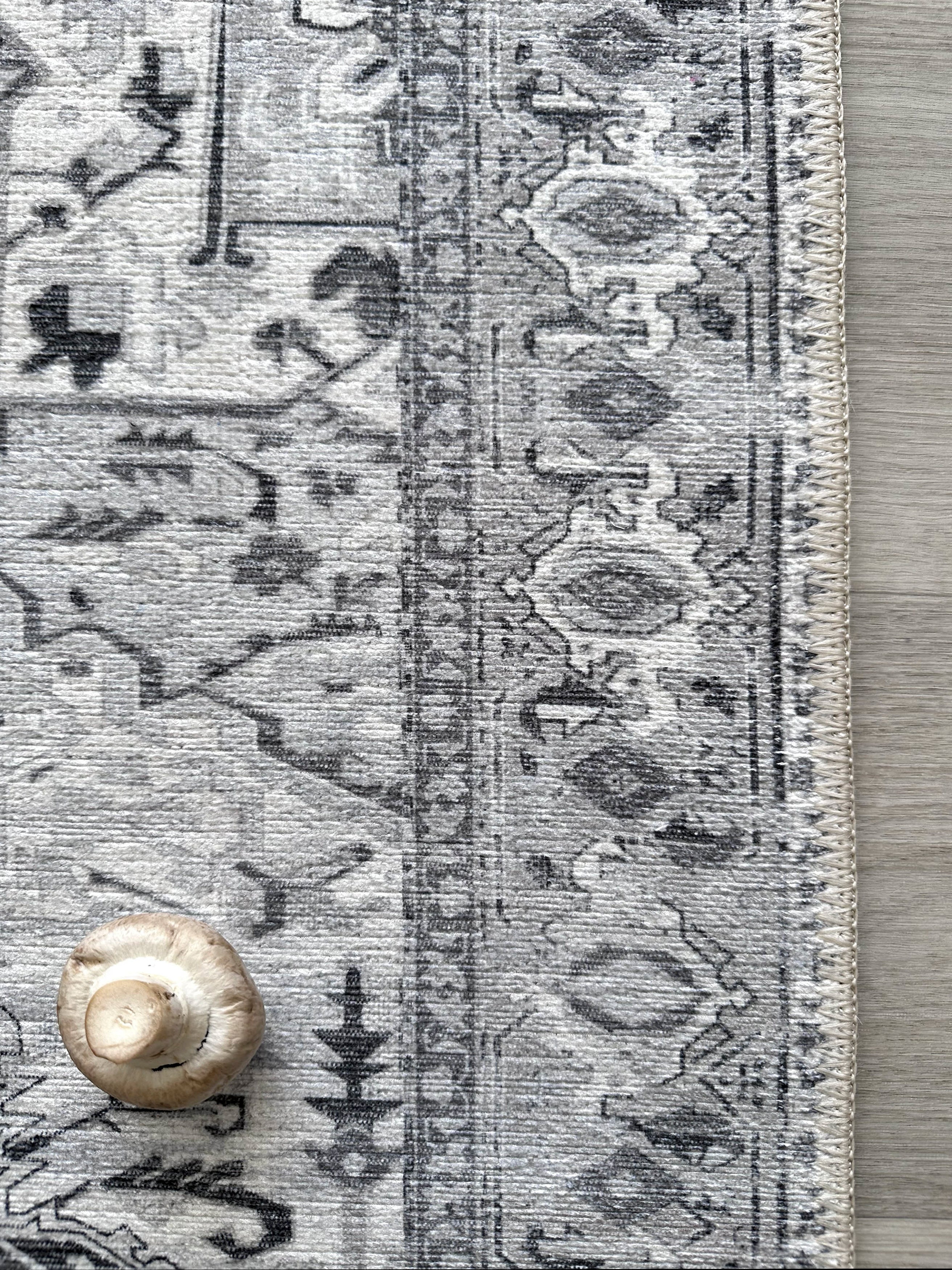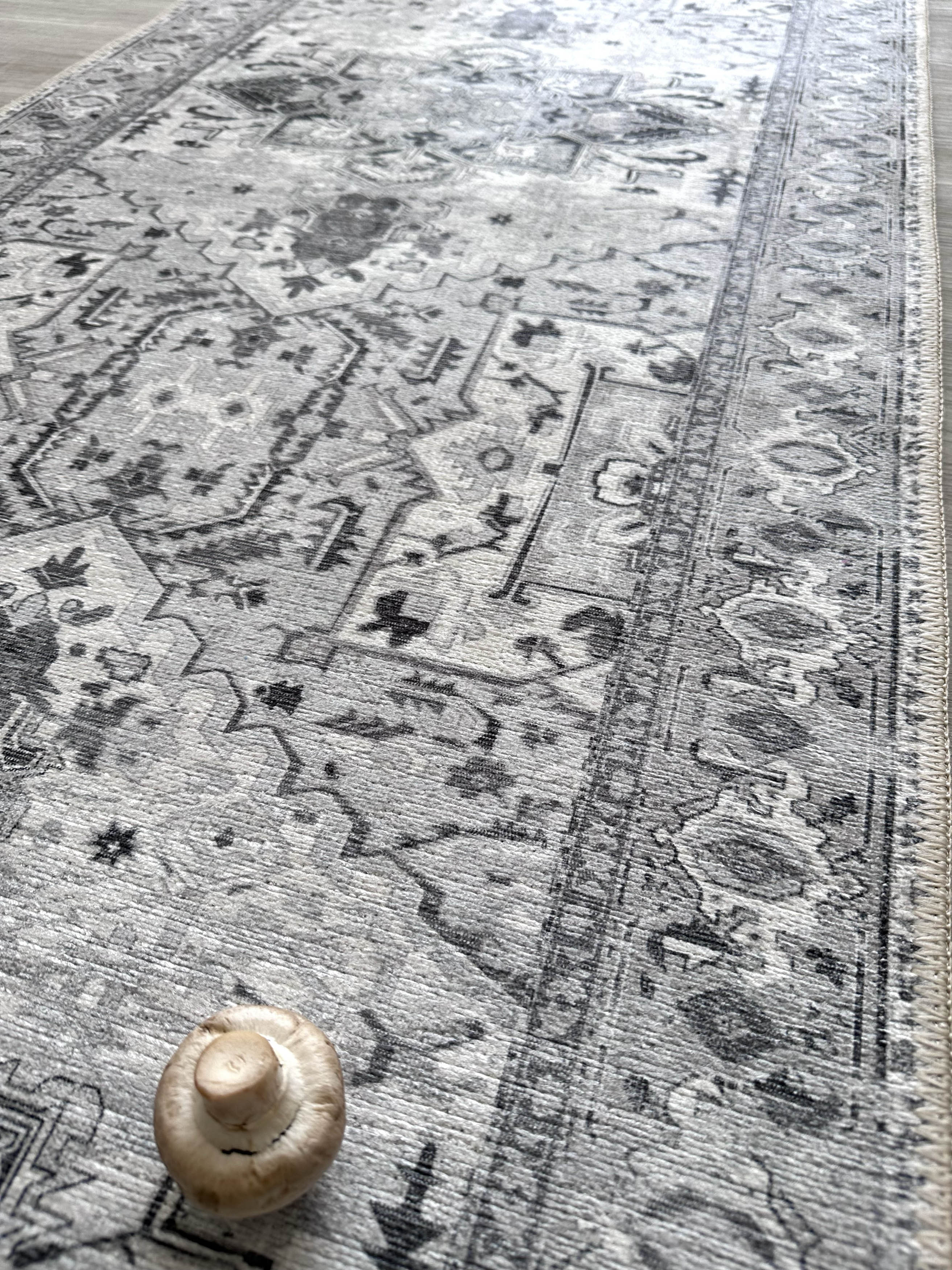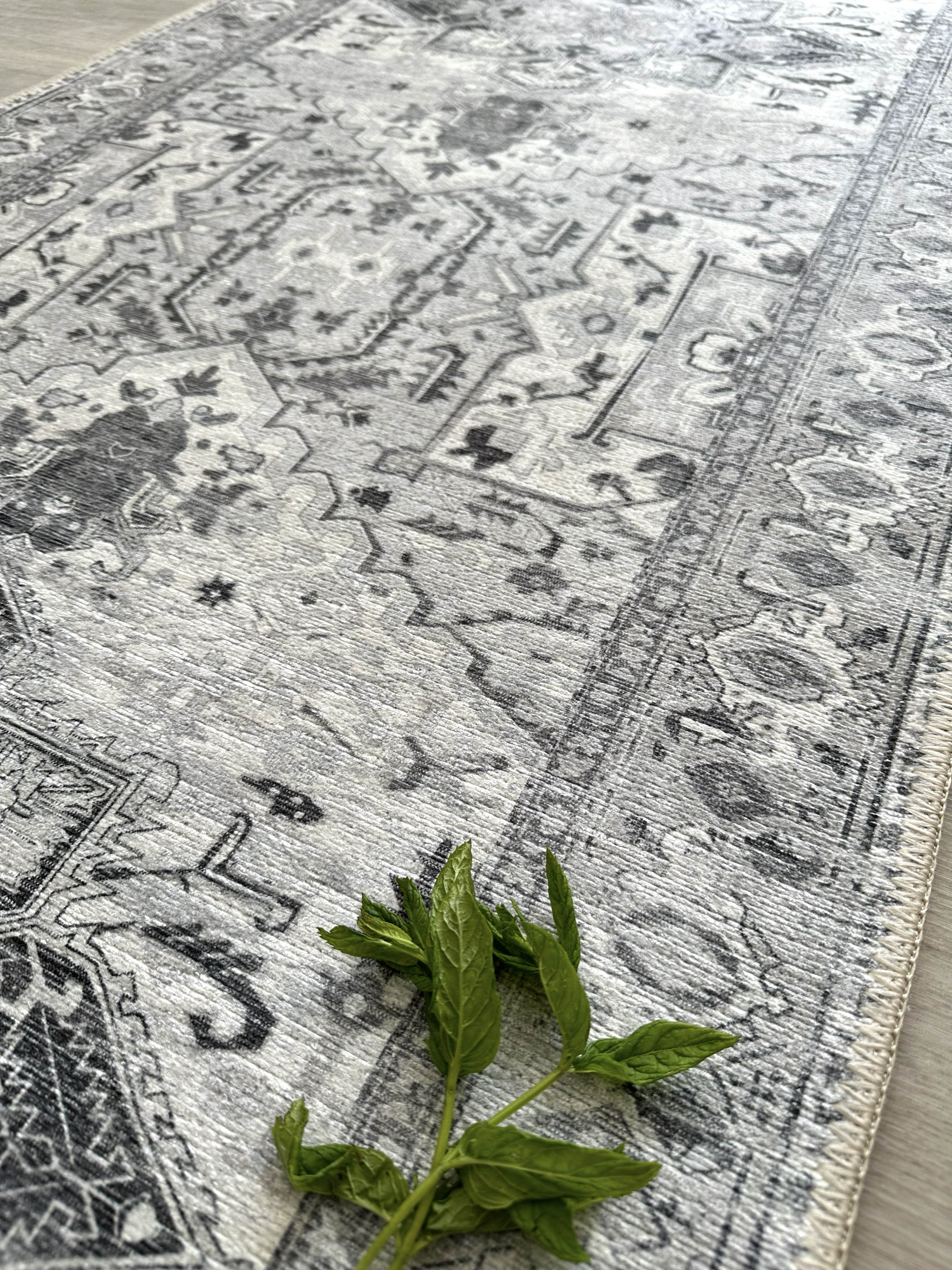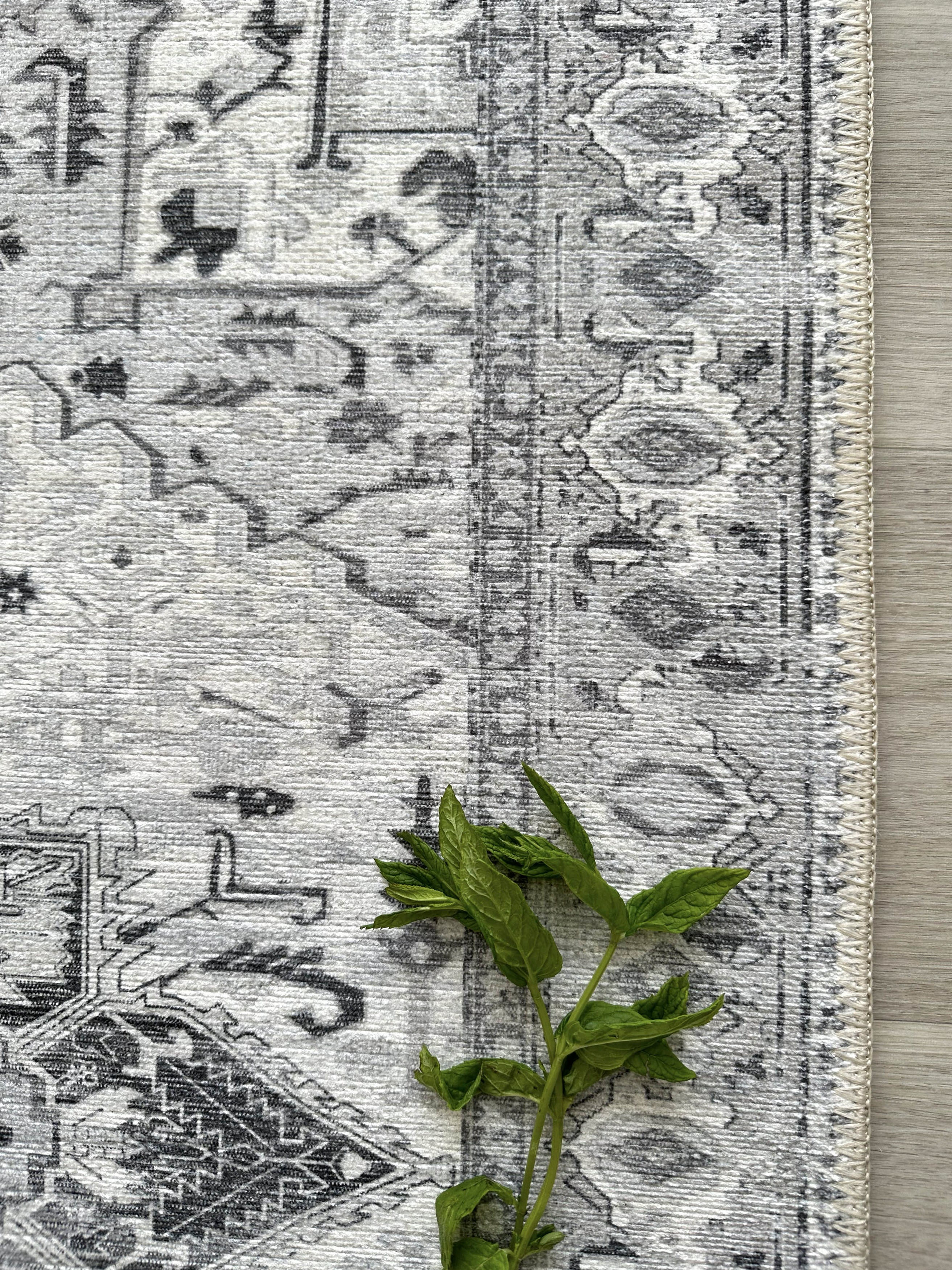 The Pastel Heriz Light Gray Area Rug is a premium flooring solution designed to bring a refined, vintage aesthetic to contemporary American homes. As a sophisticated choice among high-quality area rugs, this piece utilizes a soft palette of dove gray, muted silver, and subtle pastel accents to create a bright, neutral environment in any room. These modern rugs provide a durable and stylish foundation, successfully reimagining the geometric motifs of traditional Persian Heriz designs for today’s lifestyle. As a practical and washable addition to the home, these elegant rugs serve as a bridge between timeless artistry and the functional demands of a modern household. This low-pile, digitally printed rug combines a distressed vintage pattern with a machine-safe construction, making it an ideal choice for high-traffic American living spaces.