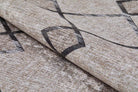 Lora offers a unique beige vintage bohemian rug, featuring geometric black patterns, . Ground your space with this bohemian-inspired luxury floor rug for a versatile base to build a luxury vintage style. Perfect choice for living rooms, bedrooms, entryways and kitchens.