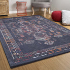 Turkish Kilim Rug, Navy Blue Vintage Inspired Antique Floral Large Oversized Area Rugs for Living room Dining Bedroom Bathroom Kitchen-Area Rugs-famerugs-2'x3' ft 60x90 cm-fame