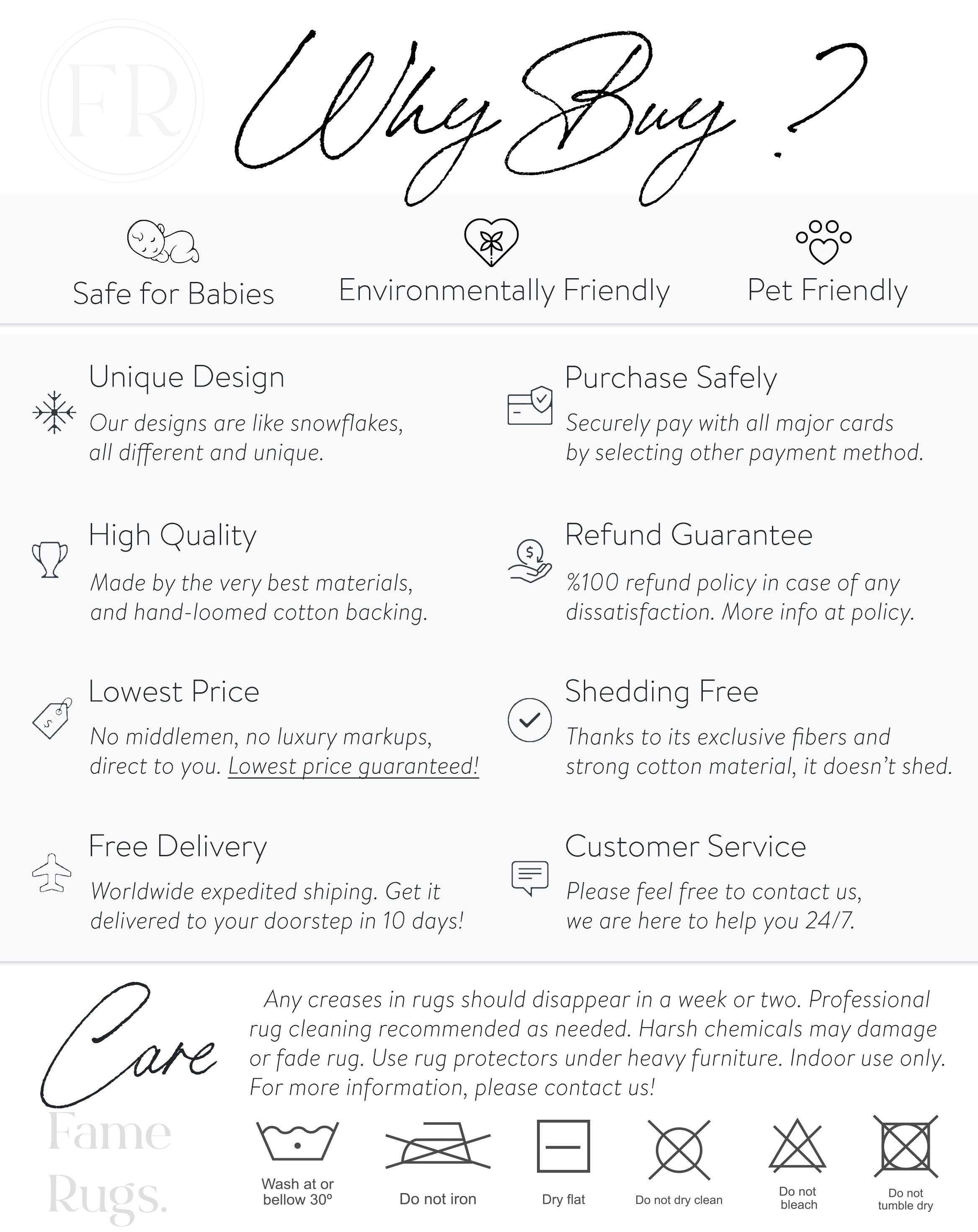 We do not accept exchanges or cancellations. However, if you have any questions or experience any issues with your order, please contact us or email us at hello@famerugs.com and our team will be happy to assist you.