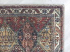 Unique Turkish Diamond rug with brown, beige, terracotta and faded blue motifs, inspired from the antique design vintage style geometric pattern, to add style and comfort underfoot. Perfect for all areas of the home. The availability in a variety of sizes offers a great choice for a living room, dining room, bedroom, kitchen, home office, entry, bathroom, and hallways.