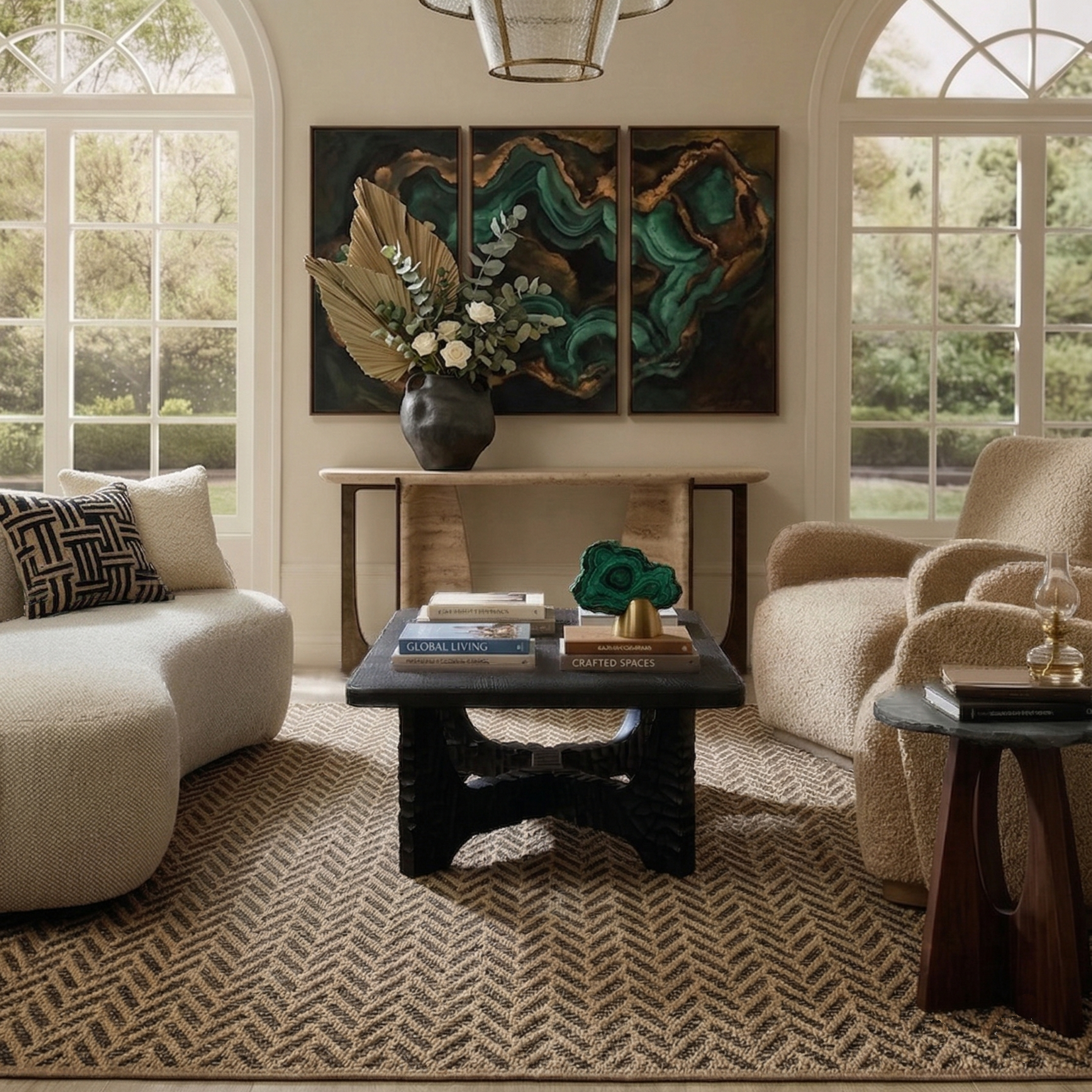 Texture plays a major role in bohemian design. Woven details, low-pile finishes, and soft fibers add dimension and warmth to your floors. Layering rugs is also a common trend in boho interiors, allowing you to mix patterns and create a more dynamic look. For example, pairing a neutral base rug with a patterned boho rug can instantly elevate your space.