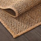This durable area rug showcases a dynamic herringbone weave that blends rich ochre brown with deep charcoal accents. Designed to mimic the organic texture of natural sisal, it features a robust flat-weave construction that is both stylish and highly functional. The intricate zigzag pattern adds a touch of rustic sophistication, making it a perfect match for nature-inspired interiors.