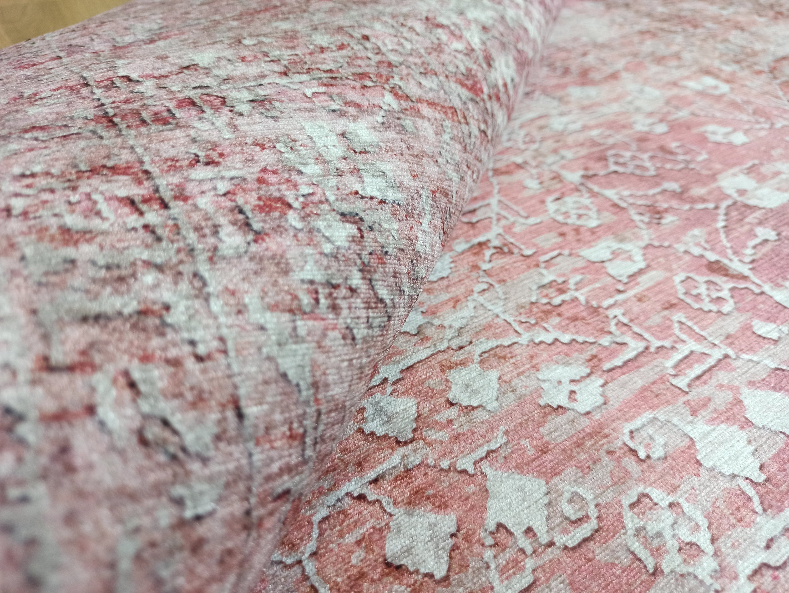 The hand-knotted and handwoven effect with the inventive printing process is perfect to provide a textured effect by portraying every single individual knot on a soft base. It is a unique piece of art with hand-loomed cotton back; hand-finished by skilled craftswomen. It is thin, and easy to handle. Thanks to its polyester fiber and strong construction, it doesn’t shed. Just what you need for your busiest spaces.