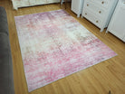Chloé Rug offers a vintage blush beige, pink, and white floral vintage Turkish rug, featuring a shabby chic touch to give a luxurious vibe and add comfort underfoot. The hand-knotted effect with the inventive printing process perfectly provides a textured effect by portraying every individual knot on a soft base. Perfect for all areas of the home.