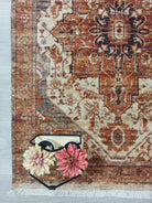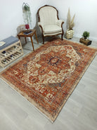 Eylul Turkish Vintage Medallion Style Beige Orange Rug