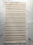 Gama offers reversible kilim, flatweave Turkish area rug, striped in white and beige. Perfect choice for modern decoration. The handwoven effect with the inventive printing process perfectly provides a textured effect by portraying every individual