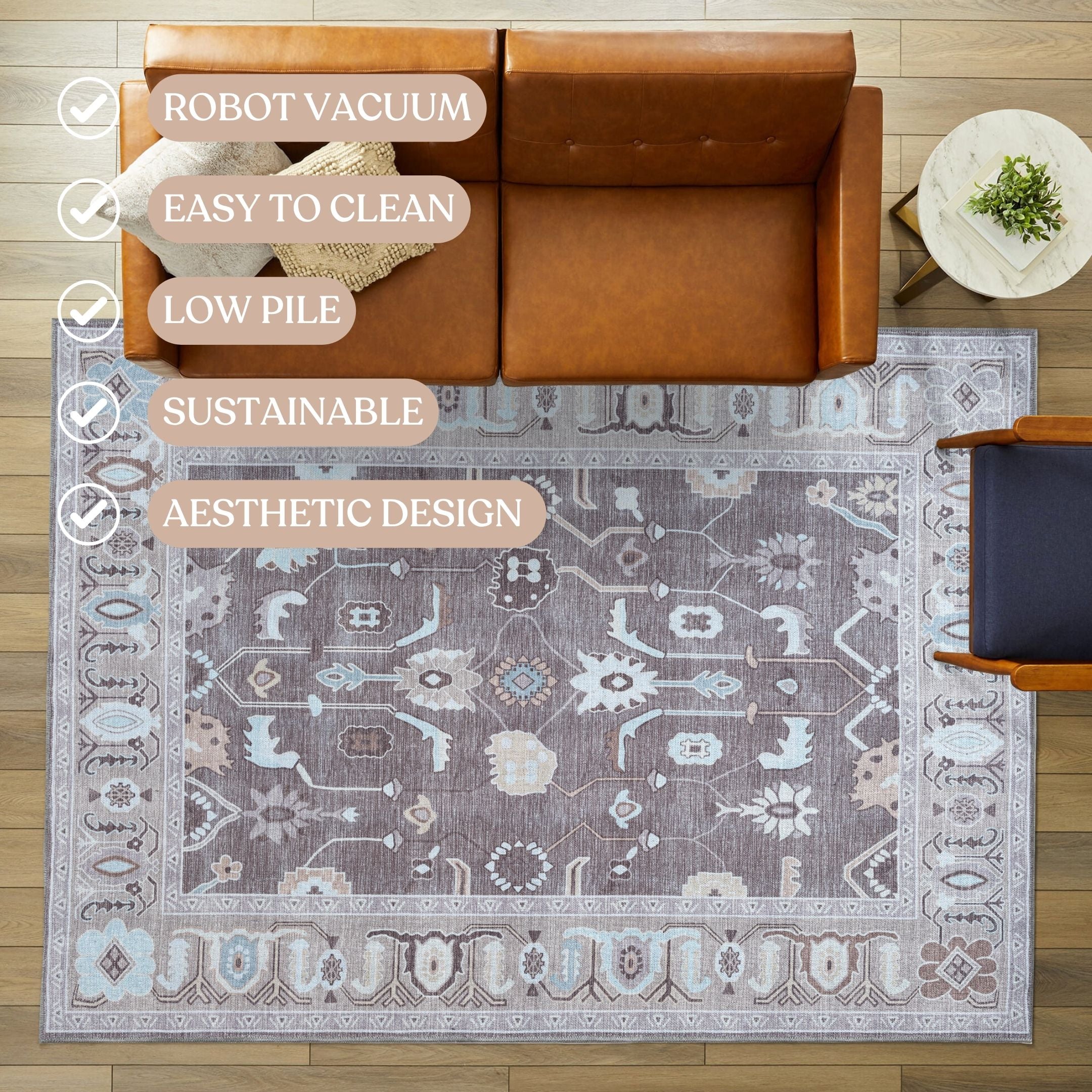 The Rawiya Brown Gray Modern Oushak Rug is a premium flooring solution designed to bring a refined, vintage aesthetic to contemporary American homes. As a sophisticated choice among high-quality area rugs, this piece utilizes a balanced palette of deep cocoa brown, slate gray, and soft charcoal to create a grounded, modern environment in any room. These modern rugs provide a durable and stylish foundation, successfully reimagining the intricate details of traditional Turkish Oushak designs for today’s lifestyle. As a practical and washable addition to the home, these elegant rugs serve as a bridge between timeless artistry and the functional demands of a modern household. This low-pile, digitally printed rug combines a distressed vintage pattern with a machine-safe construction, making it an ideal choice for high-traffic American living spaces.