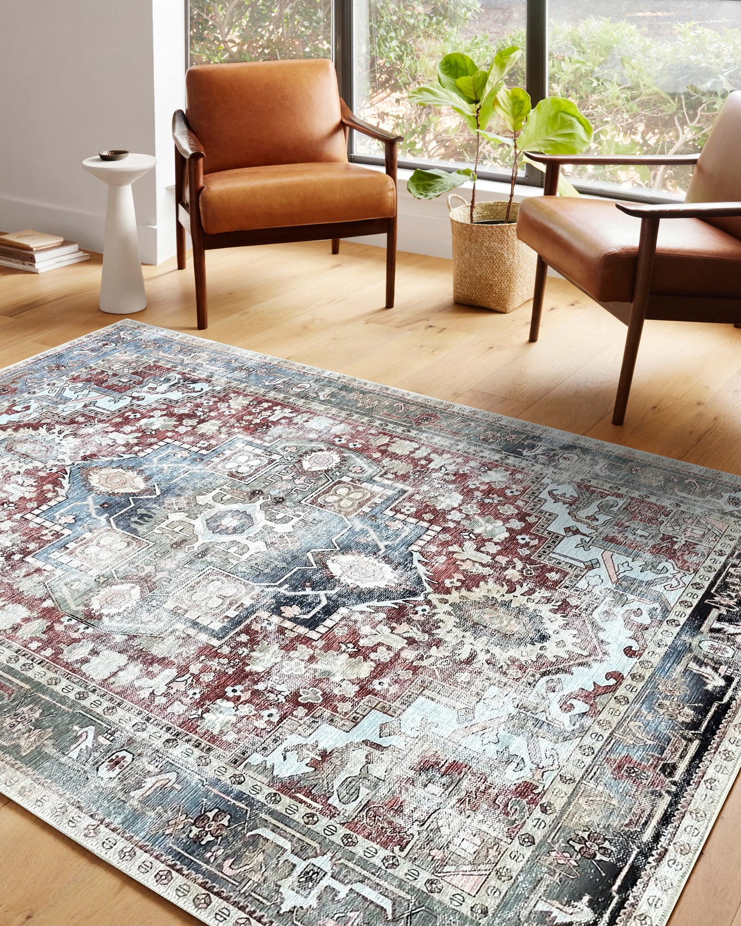 These magical rugs are lovingly crafted in Turkiye, a place where artistry and tradition intertwine. They have a low pile and boast digitally printed patterns that are perfectly distressed, exuding effortless charm. Plus, they come with a traction backing, making them ideal for busy spaces like entryways, halls, living rooms, bathrooms, and kitchens. How adorable is that?