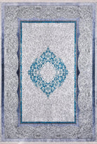 Jade medallion turkish gray blue rug, introducing an oriental vibe and vintage style. The gray and blue colors accentuate this antique style, while the faded design keeps it more calm and smooth. The handwoven effect with the inventive printing process perfectly provides a textured effect by portraying every individual knot on a soft base.Β