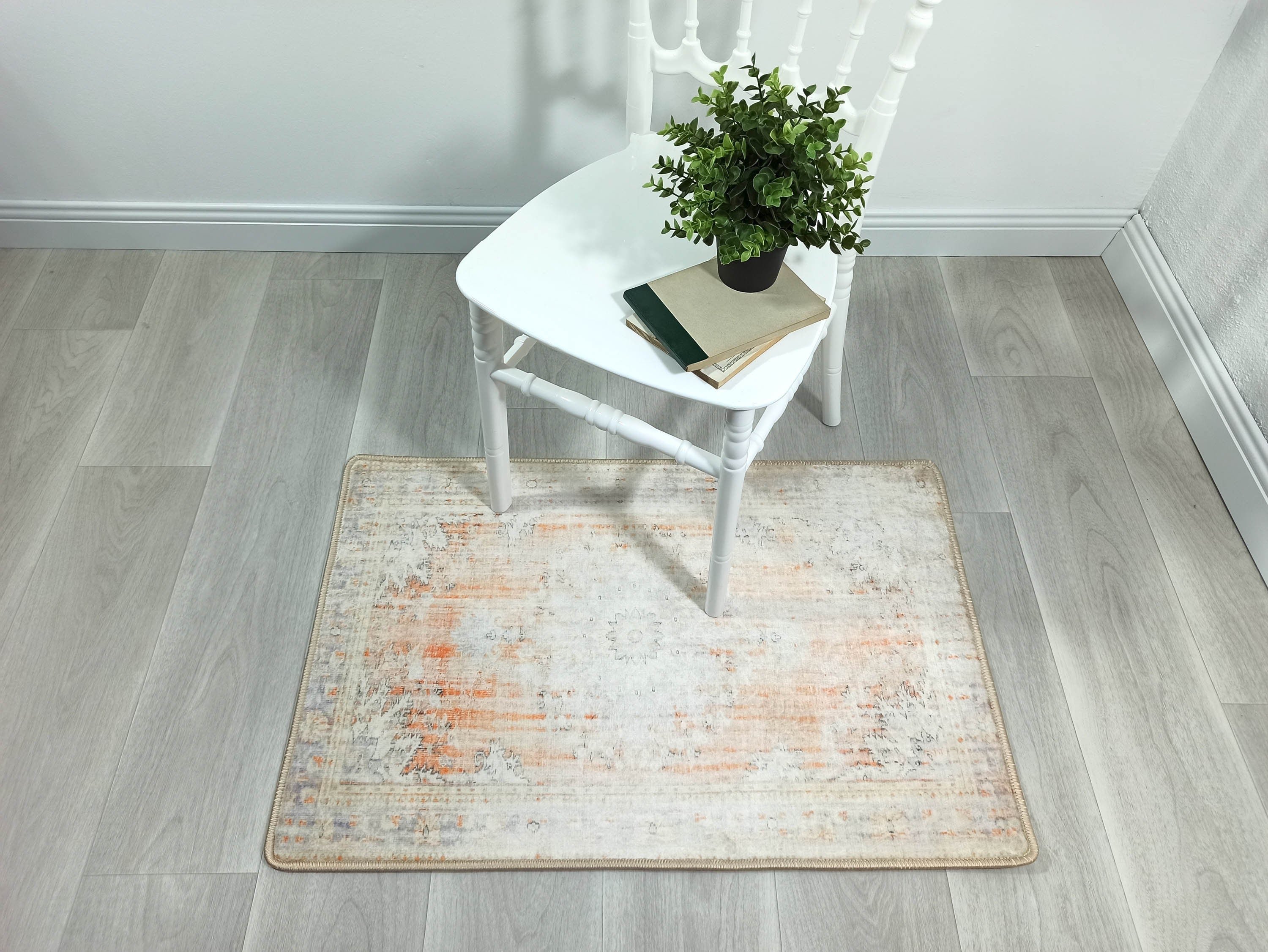 Soft plush texture, Perfect faded orange color and faded beige motifs. Unique Turkish non-slip door mat rug, vintage style geometric pattern, oriental design and super soft texture to add instant style and comfort underfoot, perfect for all areas of the home, great choice for entryway, kitchen, bathroom, bedroom, home office, laundry etc.
