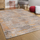 Mira offers this abstract modern artistry to add a pop of orange and beige shades to your room ground.  This area rug combines a traditional, ornate style with a modern construction, featuring a unique design drawn in a warm palette. Perfect choice for you to refresh your home atmosphere.